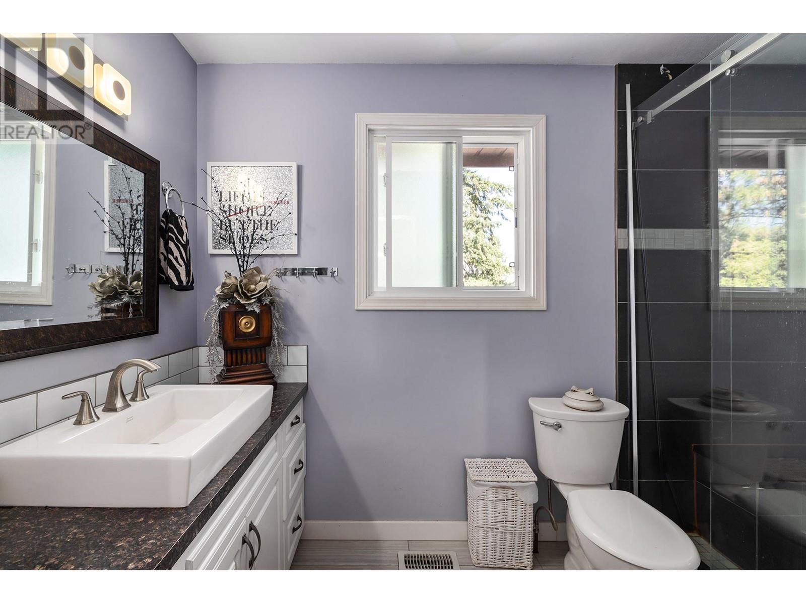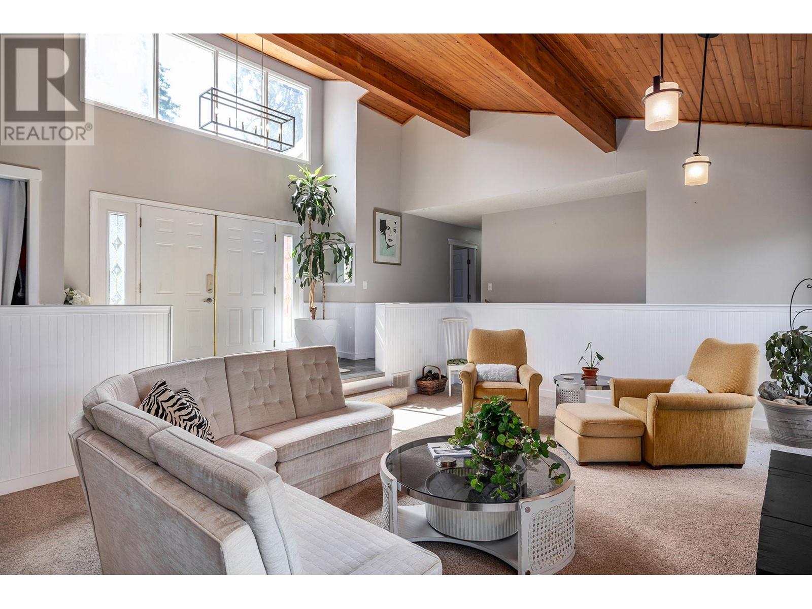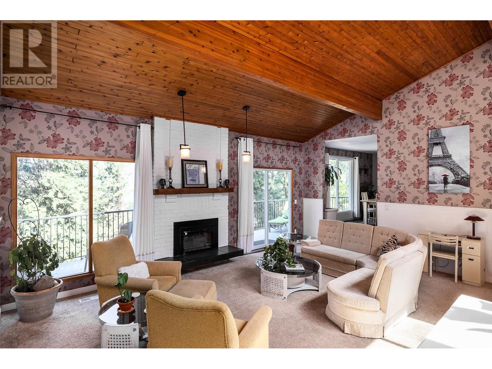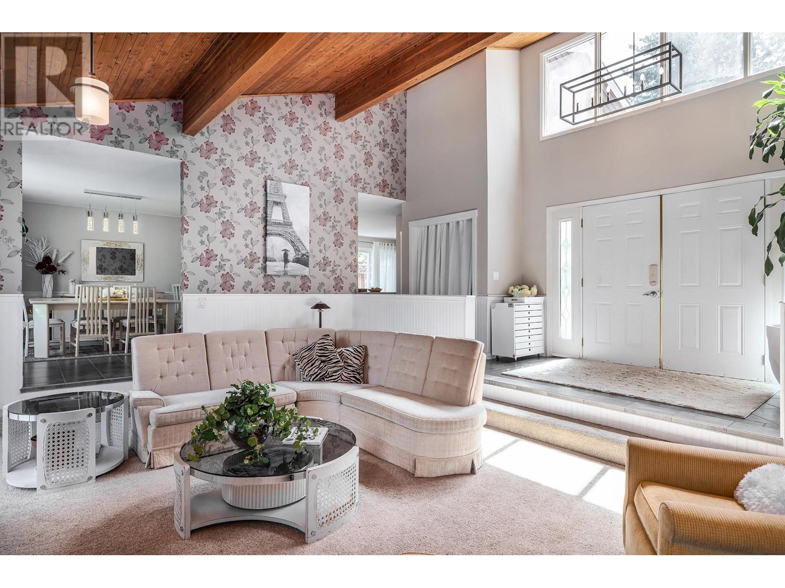 Located on a quiet no thru street, this lovingly maintained West Coast contemporary home is 3 minutes to the bridge for easy access to Kelowna. Step through the front door into the heart of the home, where you'll find a spacious living area with an open layout to the dining area and kitchen, vaulted ceilings creating a warm and inviting atmosphere. This 5 (all large) bedrooms + den & 3 bath home features an island kitchen and ample storage space and a finished basement with a suite (potentially 2 suites). The primary bedroom features an en-suite bathroom, offering a private oasis for relaxation. Vaulted ceilings, large rooms, wrap around deck, ideal location, spacious layout, and endless potential, this home is just waiting for you to make it your own. RV parking available at the bottom of driveway. Ample parking on the large driveway as well as an attached double car garage. Air BnB ready! Don't miss this one! (id:26472)