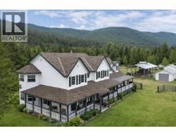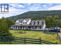Welcome to your dream rural retreat—a stunning custom farm-style home nestled on just under 15 acres overlooking Hayes Creek. This spacious partially furnished five-bedroom, five-bathroom residence offers a blend of comfort, functionality, and tranquility. Featuring a LEGAL one-bedroom suite that provides an ideal space for family living or potential rental income, adding versatility to this impressive property. Inside, you'll find recent upgrades including new flooring and fresh paint throughout, a large open-concept kitchen with a generous island and commercial refrigerator, and modern vanities in the bathrooms. The home has geothermal heating, ensuring efficient, eco-friendly warmth year-round. Upstairs find a spacious game room plus an extra kitchen and bar area for entertaining family and guests. Outside, the property boasts fenced landscaping and outbuildings, growing vegetable gardens, suitable for livestock, pets or privacy, along with a detached shop and carport with more suite potential. There is ample room for RV parking, and a sizeable 36x24 covered area for parking and storage options. Located just 24 kms from town, this property offers a peaceful rural setting with nearby amenities. Whether you're seeking a versatile farmstead, extra income, or a tranquil retreat, this property presents an exceptional opportunity. Schedule your private tour today and experience all that this incredible farm-style home has to offer. (id:26472)
