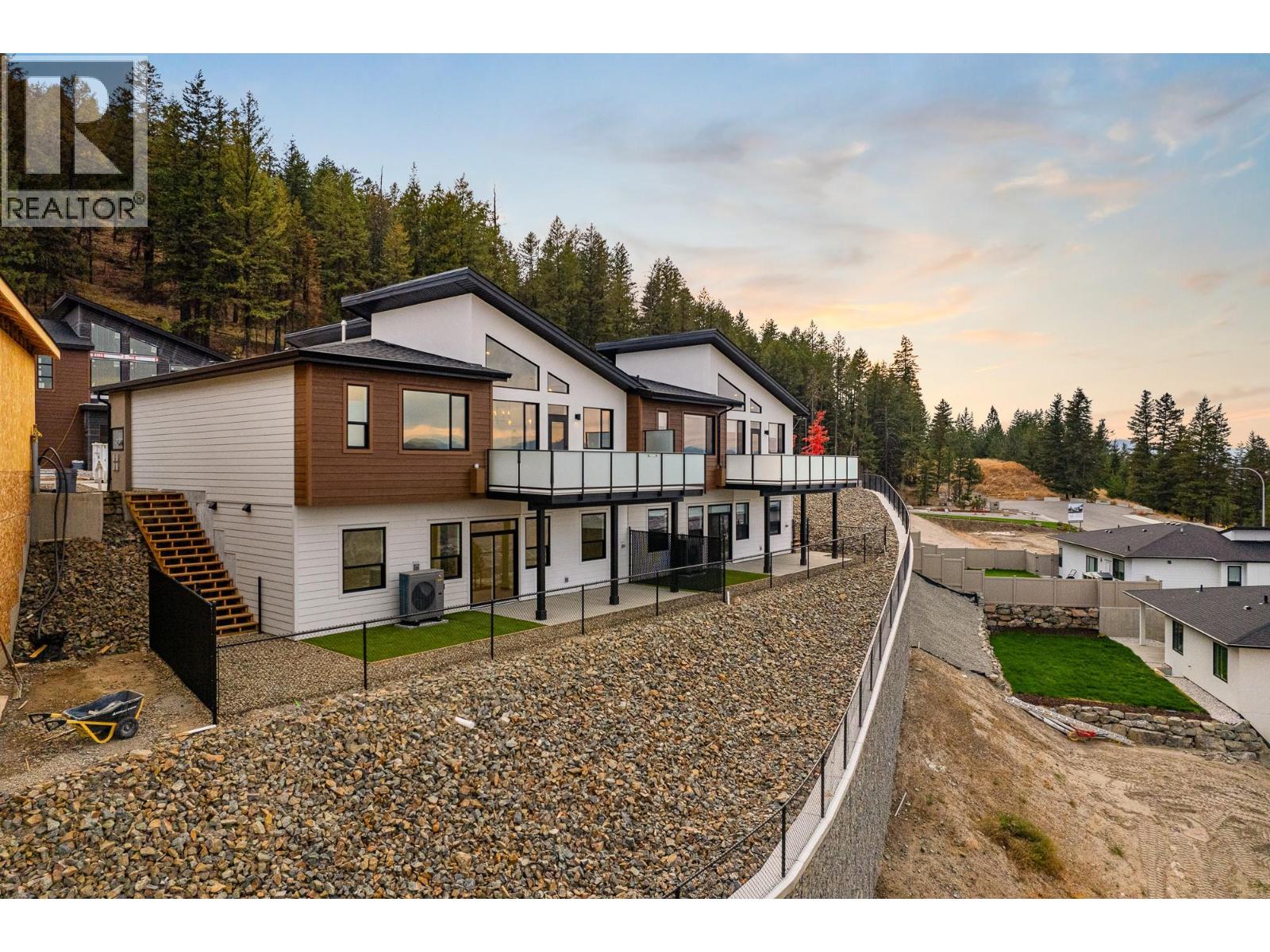 $162.50 MonthlyWelcome to The Landing at Juniper West – an exclusive collection of 3-bedroom duplex homes perched atop Juniper Ridge on scenic Coldwater Drive. Showcasing striking modern architecture, each home seamlessly blends style, functionality, and breathtaking natural surroundings into one perfect package. Thoughtfully crafted entry-level layouts feature a bright, open-concept floor plan that flows effortlessly between the living, kitchen, and dining spaces. Vaulted ceilings and expansive windows frame unobstructed river and city views, inviting the beauty of the outdoors into your everyday living. With the primary suite and laundry conveniently located on the main floor, you have everything you need within easy reach. The rancher-style design includes a walkout basement offering two additional bedrooms and a full bathroom—delivering flexibility and comfort for every stage of life. This duplex also contains a Bonus space with the suspended slab under the basement, providing additional square footage to your home! Outside, enjoy professionally landscaped, low-maintenance yards and the added ease of a low Bareland Strata fee. Every home comes turn-key ready, complete with a full appliance package, stylish window coverings, and contemporary finishes—so you can settle in and start enjoying immediately. This is elevated living in one of Kamloops’ most sought-after neighbourhoods. (id:26472)