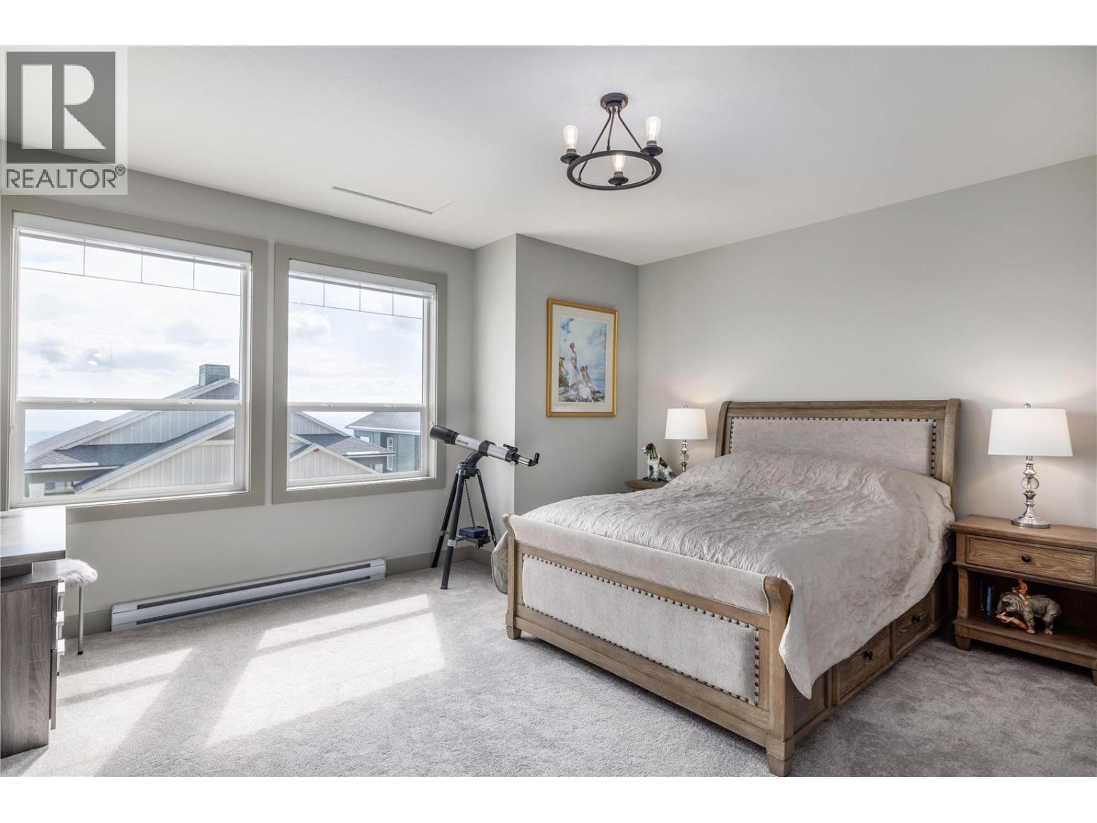 This professionally designed semi-attached home with mountain views at Big White boasts four well-appointed bedrooms and four bathrooms and over 1900 square feet of living space, ideal for family gatherings and entertainment. Enjoy the convenience of ski in/ski out access from the nearby Serwa ski run and a short walk to all Village amenities. The main level features a gourmet-inspired kitchen with granite countertops, a gas range, wine fridge, stainless steel appliances, along with a spacious dining area. A cozy living area with an impressive floor to ceiling gas fireplace provides a warm ambiance & offers views of the Monashees. The covered private deck has space and hook-ups for a hot tub, as well as additional room for lounging & BBQ. On the upper floor, discover the primary suite with a walk-in closet and ensuite bathroom with heated floors, alongside two large bedrooms & full bath with heated floors for quiet separation from guests. The ground floor hosts a double car garage with ample storage, hallway with heated floors to an extra room, and a full bathroom also with heated floors—perfect for guests or kids. With no rental restrictions, this property comes fully furnished and is ready for immediate possession. Similar properties in the area have generated rental revenues ranging from $60,000 to $85,000. Plenty of room for guests with a four car driveway where shovelling is all taken care of. Exempt from Foreign Buyer Ban, Foreign buyers tax, speculation tax, empty home tax, and short term rental ban. (id:26472)