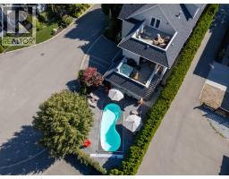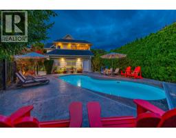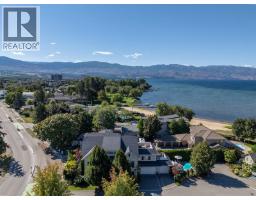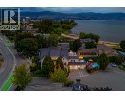 $30 MonthlyWelcome to luxury living on highly desirable Abbott Street! Combining timeless elegance with modern functionality, a spacious layout and impeccable finishes throughout. The grand double-storey foyer, embraces you with under-floor heated tile, soaring vaulted ceilings, and an abundance of natural light. An elevator, enhances accessibility and convenience. The ground level is perfect for guests or multi-generational living, featuring a private suite with kitchenette, sitting room and garden courtyard access, ideal for in-laws or Airbnb. An office, home theatre, laundry, and pool bathroom round out this level. The main floor chef’s kitchen with premium appliances and pantry, a great room with gas fireplace, two bedrooms with a shared bathroom, powder room, dining area, and a full wet bar with a dishwasher, wine and beverage fridges is an entertainer’s dream. Step outside to a stunning lounge and dining area with gas fireplace, TV, phantom screens, and hot tub. The top floor is an indulgent primary retreat with a spa-inspired marble bathroom, dressing room with laundry, private sitting area with fireplace, and a serene sun deck. Enjoy your secluded oasis with a UV pool, auto cover, and ample lounging space. A heated triple garage with additional storage completes this exquisite home. This freehold, bare land strata with private beach access has a low monthly strata $30 covering insurance for the common road. Ideally located near Pandosy Village, KGH, and the lake. (id:26472)