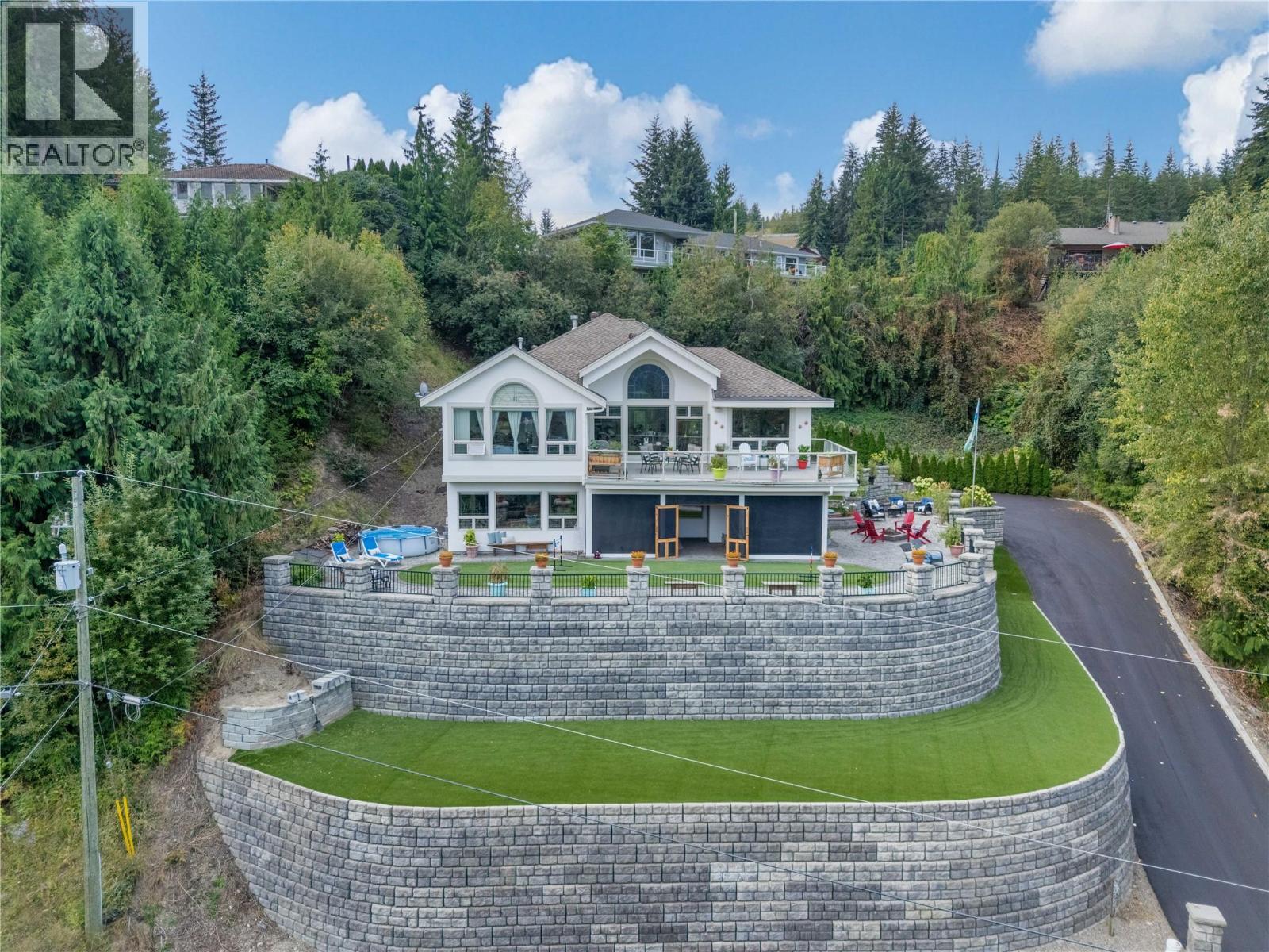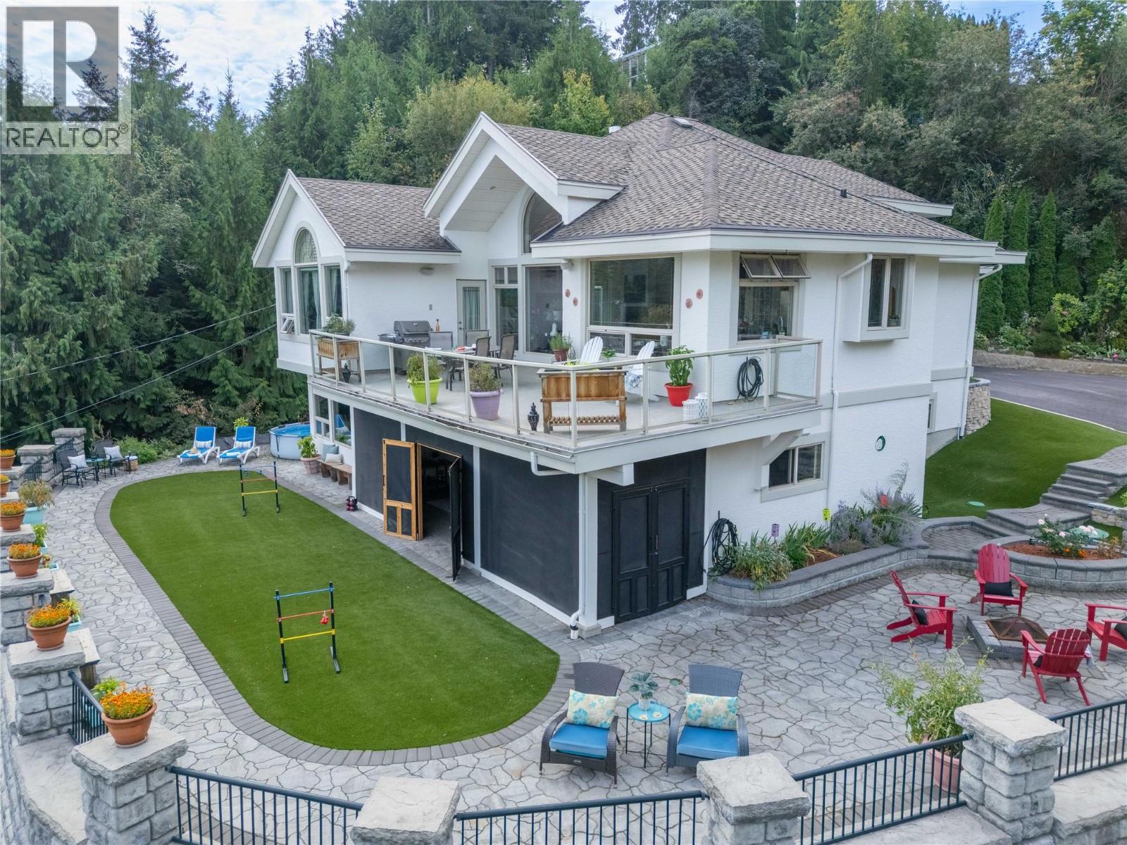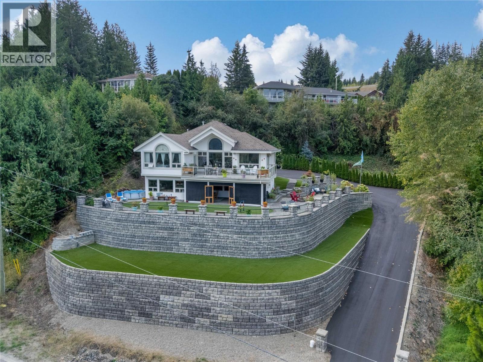 2422 Waverly Drive, If you have ever wanted to feel like you lived in a castle with incredible views of greenery, the mountains, and a peekaboo lake view, then this is the place. Custom home with plenty of privacy, 5 beds, 3 baths, and a bonus in-law suite on the lower level. Low-maintenance yard, lock and leave with synthetic turf, so you don't need to spend your time mowing the lawn. Screened-in sunroom gives you extra space to enjoy indoor-outdoor living while escaping the sun or taking the chill away to extend the season. The feeling when you walk in the door is vaulted ceilings, views, and beautiful hardwood flooring with slate tiles. There is a gas fireplace as well as forced air heating and central air. The kitchen, living, and dining are open plan and flow out onto the balcony where you can sit and enjoy the privacy on this quiet street in Blind Bay. Not far from amenities like boating, golfing, restaurants, gym, grocery stores, and more. Check out the 3D tour and video. This home has a steeper driveway, please consider if that is a factor before booking a showing. (id:26472)