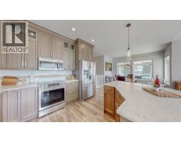 PANORAMIC LAKEVIEW HOME in a GATED COMMUNITY. This beautifully appointed home offers well designed living spaces and huge decks that face the lake. The main floor highlights a bright, open-concept kitchen, dining, and living area including a large island with built-in wine fridge, induction cooktop and upgraded finishes throughout. The expansive wall of windows opens to the deck and showcases panoramic lake and landscape views that you can enjoy while relaxing in your living room. Walk-out on the lower level to a massive covered patio for private outdoor relaxation. The lower level has its own private entrance and features high 10-foot ceilings, a kitchen, 2 bedrooms, 2 full bathrooms, living room with built-in wine cabinets and a cozy gas fireplace. Additional features include efficient geothermal heating & cooling and a boat slip with open & easy docking access. Amenities include a marina, private beach, a designated dog beach, 2 pools, 2 hot tubs, fully equipped fitness centre, clubhouse and a dog park. Short-term rentals are permitted. The layout of this home is ideal for multi-generational living, or extended guest stays. It's also a great revenue generator and the home comes furnished! Whether you're looking for a full-time residence, a vacation escape, or a revenue-generating investment, this home delivers. Take time for yourself and kayak, paddleboard, boat, swim or play pickleball in this active & friendly community. (id:26472)