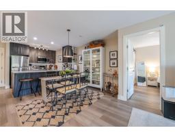 $382 MonthlyBeautiful and updated 2 Bedroom/2 Bath Condo in the heart of Penticton at The Ellis complex on Hastings Ave. Some of the improvements of this tastefully renovated condo are upgraded kitchen cabinets and countertops with an extended 9ft. peninsula Island that makes entertaining a breeze with a 10” overhang for up to 4 bar stools. There is an extensive use of white beveled subway tiles for a designer touch. The attractive open concept kitchen comes with quality stainless appliances including a stove with convection oven, dual zone fridge, high end DW and microwave with LED lighting throughout. The open concept dining area has room for a table and 6 chairs and a display cabinet. Quality vinyl plank flooring throughout and a custom Benjamin Moore paint color gives this unit a high-end look with a neutral palette for all your decorating choices. The Master Bedroom has a barn door that leads to an upgraded walk-through closet and ensuite with extensive upgrades such as the cabinet/countertop/backsplash. The front entrance has a sizeable closet with a 4’ x 8’ storage/pantry behind a 2nd barn door. This property boasts a beautiful, covered deck with upgraded vinyl flooring facing east to enjoy the morning sunrise and provides shade in the hot afternoon summers. Close to shopping, entertainment, restaurants, and only a few minute's drive to the beach. There is a secure heated parkade with one assigned stall and a 2nd underground stall included and prepaid for a year if closing is completed by Oct. 31st 2025. Strata fees are a low $382 per month and includes hot water. Pets allowed (2 cats). The Ellis at Kettle Valley has no age restrictions with rentals opportunities for the investor. (id:26472)