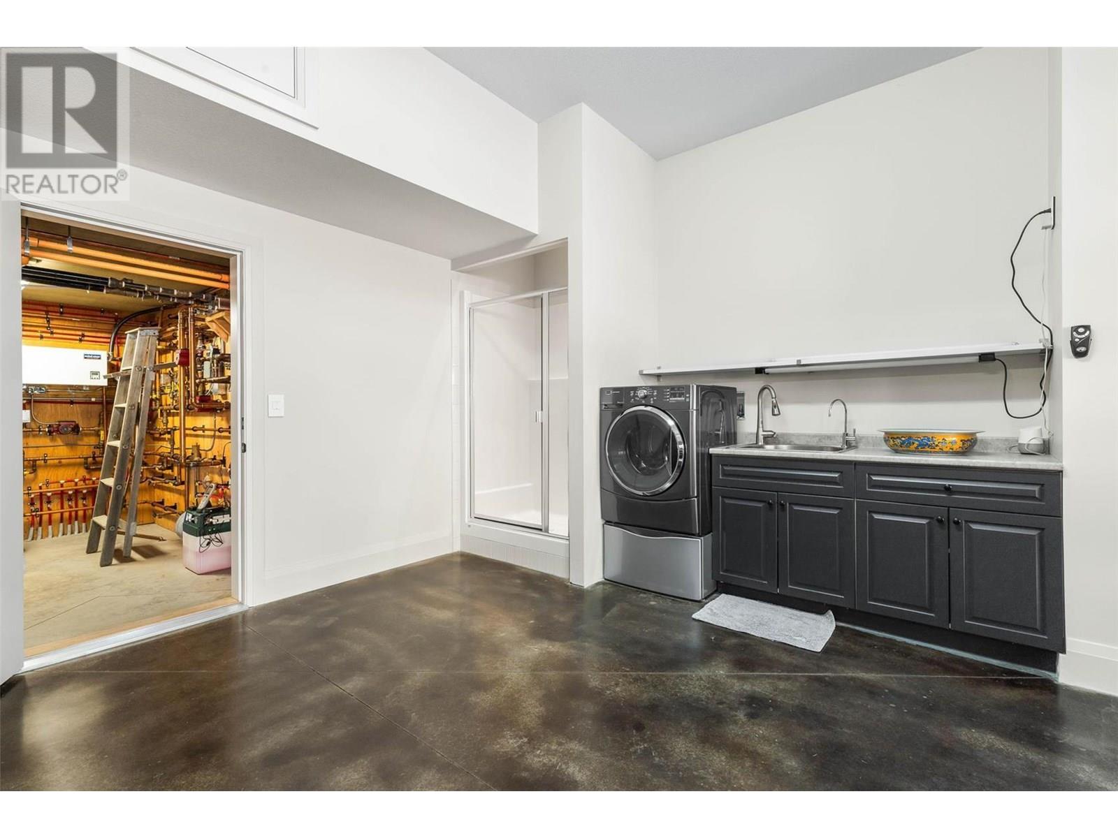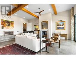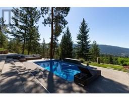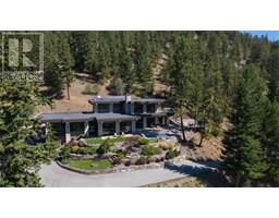 144.92 acre estate in Vernon city limits, with only +/- 9.6 acres within the ALR. 5200 plus square foot modern residence, completed in 2016, with five bedrooms and three bathrooms, a stunning pool, and top-of-the-line cosmetics and mechanical systems. Current AGRL zoning permits 12 hectare (30 acre) lots, creating immediate subdivision potential and long-term development potential. The land has significant pasture/grazing land (+/- 21 acres) which has been used for an organic lamb farm, and cattle. There is a small pond, an aspen grove, and significant cross-fencing (electric). Water is via a four gallon per minute well with a cistern system. The home is accessed via a one kilometer private paved driveway. Finishings include polished heated concrete floors, cedar beams, wood burning fireplace plus stove, and grand windows and sliding doors that access the saltwater pool. Outdoor space also has a firepit and hot tub, looking south towards the expansive lake and valley views that span to see the Bennett Bridge in Kelowna. High-efficiency GARN mechanical uses wood, thermal solar, and an electric heat pump. The property is just a few minutes drive to Predator Ridge Golf, Sparkling Hills, the new O'Rourke Winery, and is close to both Lake Country and Vernon. Outbuildings include a barn, and a 60'x40' workshop, perfect for a potential tack room if a buyer wishes to convert the lands to equestrian use. This shop also has a caretaker's suite. The property is adjacent to Ellison Provincial Park, making for a private location. (id:26472)