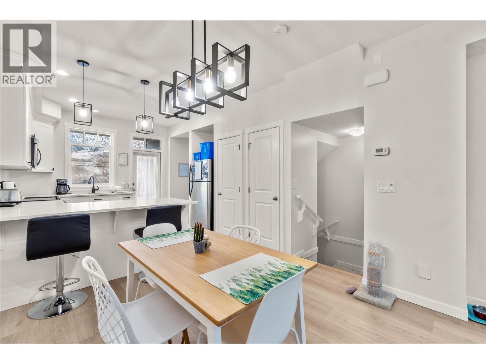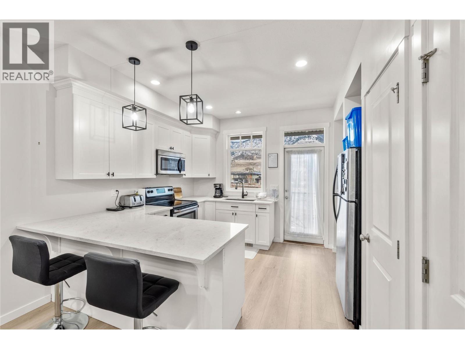 Welcome to #16 at Cortland Park, part of the Orchards Walk Development. This stunning corner unit townhouse has been fully renovated by the current owners and truly shows like new. From top to bottom, you’ll appreciate the thoughtful upgrades, including all-new flooring, fresh paint, modern lighting, quartz countertops in both the kitchen and bathrooms, and a new hot water tank - so you can move in with total peace of mind. This cozy three-level home offers the perfect blend of low-maintenance living and unbeatable convenience, with amenities and recreation just minutes away. The lower level features a large tandem two-car garage and a walk-out door leading directly to the grassy backyard common area, ideal for pets and kids. On the main level, the home feels bright and inviting, thanks to a large living room window that floods the space with natural light. The open dining and kitchen areas are perfect for everyday living and entertaining, with access to a covered rear deck for year-round enjoyment, and rounded out with a convenient 2pc bathroom. Upstairs you'll find all three bedrooms and two full bathrooms, the two rear facing windows boast a great view of the mountains and the South Thompson River. Laundry is also conveniently on the top floor with the bedrooms. Take advantage of this “like-new” home without the added cost of GST in a family oriented neighbourhood. Stylish, turn-key, and move-in ready - this one is a must-see. (id:26472)
