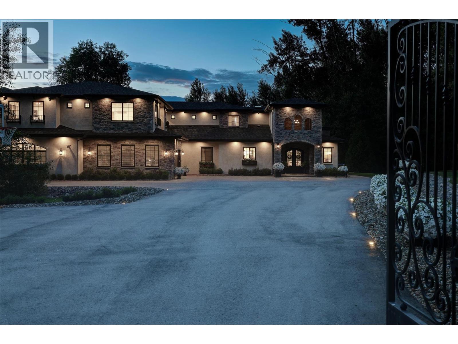Picturesque estate in Southeast Kelowna resting on approximately 7+ pristine acres, with a Tuscan-inspired residence offering over 9000 sq. ft. of luxury living with 6 beds and 7 baths. This home has been uniquely divided into 2 separate living spaces, making it ideal for multi-generational living. Designed to be a private oasis for entertainment and tranquility, the property features a high-end concrete 20x40 saltwater pool with a Baja shelf, multiple patios for outdoor living with a fireplace & TV, an outdoor kitchen, a detached 25x40 shop, horse barn/paddock, raised garden boxes, and 3 ponds surrounding the yard, creating an exceptional ambiance. The main home has been beautifully designed for a large family; the upper level offers 4 beds, including a ""luxury hotel-like"" primary retreat with a spa-like ensuite. A custom media/home theatre and games room with deck access offer a high-end experience for the ""tech"" in the family. The separate accommodation offers quality finishes and a spacious design for the extended family/in-laws. This completely private space features 3 bedrooms, 3 bathrooms, an oversized garage, and a patio to enjoy the tranquility of the surrounding ponds. This is an excellent opportunity to enjoy a rural setting surrounded by vineyards, orchards, only minutes to Myra Canyon recreational park for hiking/biking, trail riding, and the City of Kelowna amenities. (id:26472)