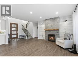 Welcome to this modern 3-bedroom, 3-bathroom home offering a flexible layout and comfortable main-floor living. Upon entry, you are greeted by a spacious open-concept living area featuring a gas fireplace. The bright kitchen showcases stone countertops, modern finishes, and a large island with an eat-in bar. Just off the kitchen is a dedicated dining area, ideal for more formal meals. Adjacent to the kitchen is a functional laundry room with built-in storage and a utility sink, with convenient access to the attached double garage. The main level boasts a spacious primary bedroom with a large walk-in closet and a 4-piece ensuite, along with a convenient half bath for guests. Upstairs, you’ll find two additional bedrooms, a full 4-piece bathroom, and a cozy nook, perfect for a home office or reading area. Enjoy outdoor living on the backyard porch, with a fully fenced yard ideal for pets or play, plus the added bonus of a clean, well-maintained crawl space providing extra storage. (id:26472)