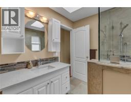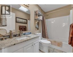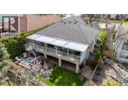 Tucked away on a quiet CDS in serene Quail Ridge, this meticulously maintained rancher offers exceptional privacy and peaceful surroundings. Backing onto a lush, wooded greenbelt (ALR), the home features a private, fully covered back deck - perfect for year-round enjoyment while overlooking natural greenery. With direct access from the primary bedroom, the deck becomes a tranquil retreat ideal for morning coffee or evening relaxation. This charming 4-bedroom, 3-bath home includes a walk-out basement and numerous thoughtful updates: kitchen cabinets, quartz countertops, and appliances (2012); custom ensuite shower and counters (2019); main bath counters, toilet, and flooring (2017); hot water tank (2018); roof (2010); hot tub (2009) with a TREX deck rebuild (2020); new basement carpeting (2019); and a 96% high-efficiency furnace and heat pump (2024). Additional features include a reverse osmosis water filter for both fridge & sink, plus a water-softening system. The fully fenced, beautifully landscaped yard enhances the sense of privacy, while the walk-out basement offers excellent additional living space with a finished bedroom, bathroom, and a spacious recreation room opening to the backyard. A workshop and storage room add extra functionality. Enjoy miles of nearby walking trails and a short drive to UBCO and to Okanagan Golf Club’s 36 holes of championship golf—all with no strata fees. This is quiet, private living at its best. (id:26472)