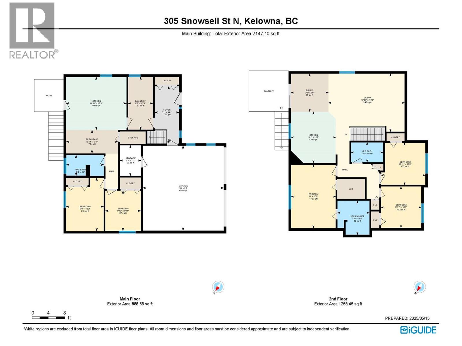 | Second Level | Primary Bedroom | 15'8'' x 11' | ||