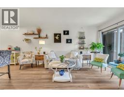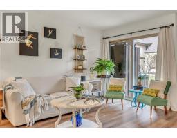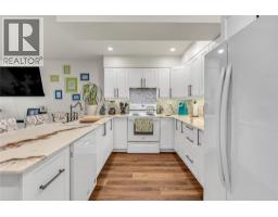 Thoughtfully renovated 1 Bed 1 Bath condo in Tiffany Gardens. The renovated kitchen has been opened up from the original closed-off layout, with new epoxy countertops complimented with updated white cabinets and a matching extended pantry storage unit. The new vinyl flooring up and down tastefully complements the light and bright space by bringing in some colour dynamics. Under the stairs has been smartly renovated to include a built-in shelving unit with a second accessible storage. The loft space has been closed off, adding extra usable square footage to the bedroom, and also adding a layer of privacy to the home. Additionally, the bathroom has been completely renovated with a tasteful white appearance. There is plenty of storage inside the laundry room. The unit has 2 outdoor spaces to be enjoyed, additionally the bottom patio has a custom storage unit. On a quiet street, within walking distance to Skaha Beach, shops, parks, and school, this location is Penticton perfection. (id:26472)