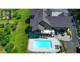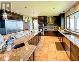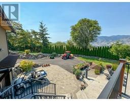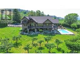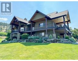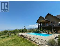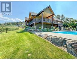 Stunning custom-built 5 bedroom, 5 bathroom executive home with Vineyard nestled on 17-acres located in the heart of South Okanagan’s Wine Country. Enjoy the panoramic views of lush vineyards and majestic mountains, blending natural beauty with sophisticated living. This Modern Rustic residence boasts nearly 10,000 square feet of meticulously designed living space, with stone and wood exteriors that integrate seamlessly with the landscape. An expansive driveway leads to a multi-car garage. Inside, the open-concept living area features high ceilings, large windows, and a stunning stone fireplace. The gourmet kitchen, equipped with custom cabinetry, live edge granite countertops, and state-of-the-art appliances, is ideal for hosting gatherings. The master suite, situated on its own floor, offers a private retreat with a luxurious en-suite bathroom and breathtaking views. Additional highlights include a home bar, a spacious laundry room with outdoor access, and a versatile garage space. The lower level features a large family/recreation room; ideal for a home theater or game room, an exercise area, a wine cellar, and a workshop with garage door access. The outdoor area is equally impressive, with landscaped gardens, salt water swimming pool, and a hot tub. Plantings consist of approx 1.4 acres each of Gamay Noir & Pinot Gris and 5 acres Gewurztraminer which is a perfect blend for those seeking a Vineyard lifestyle in one of the South Okanagan's most desirable locations. (id:26472)