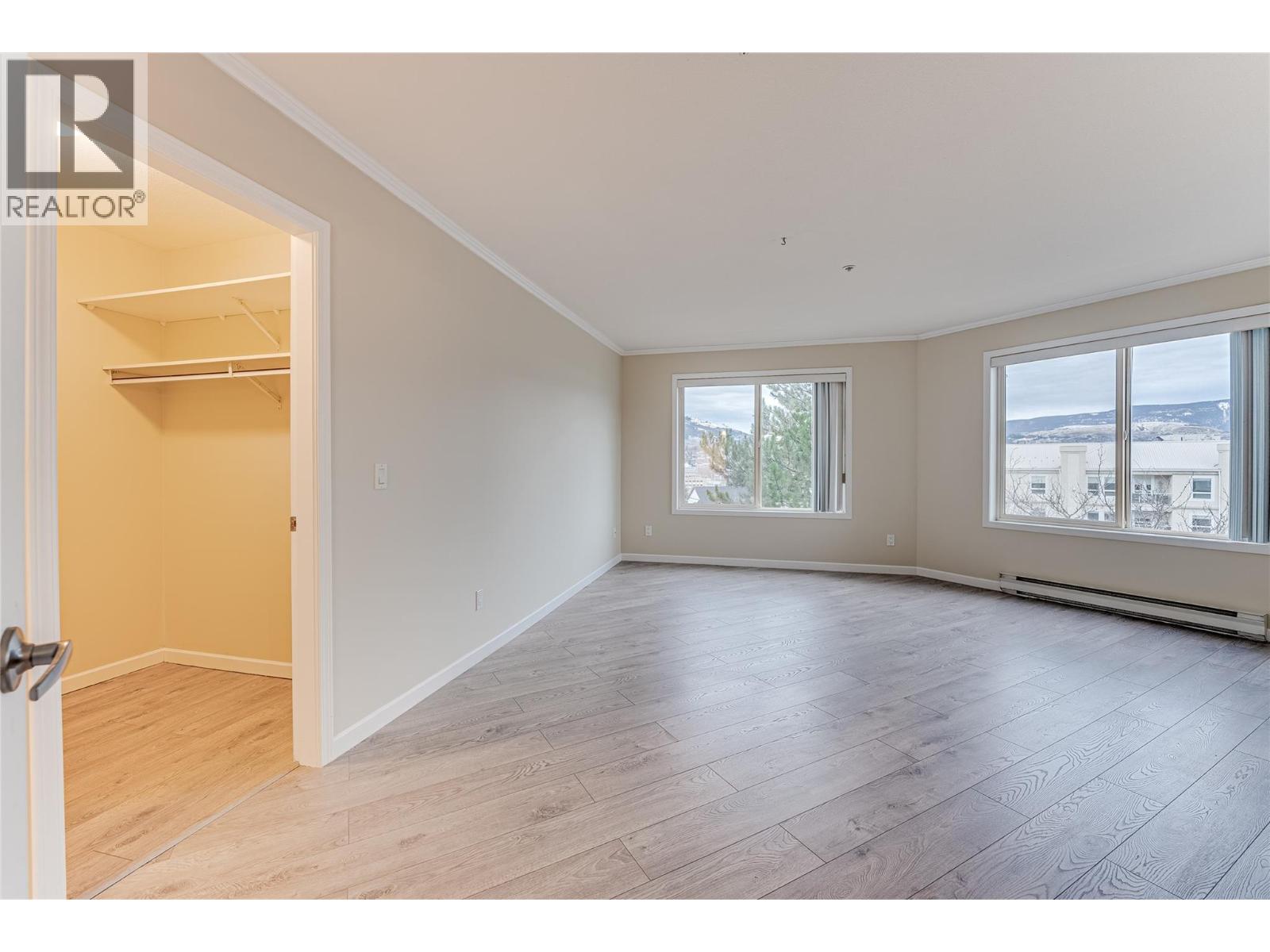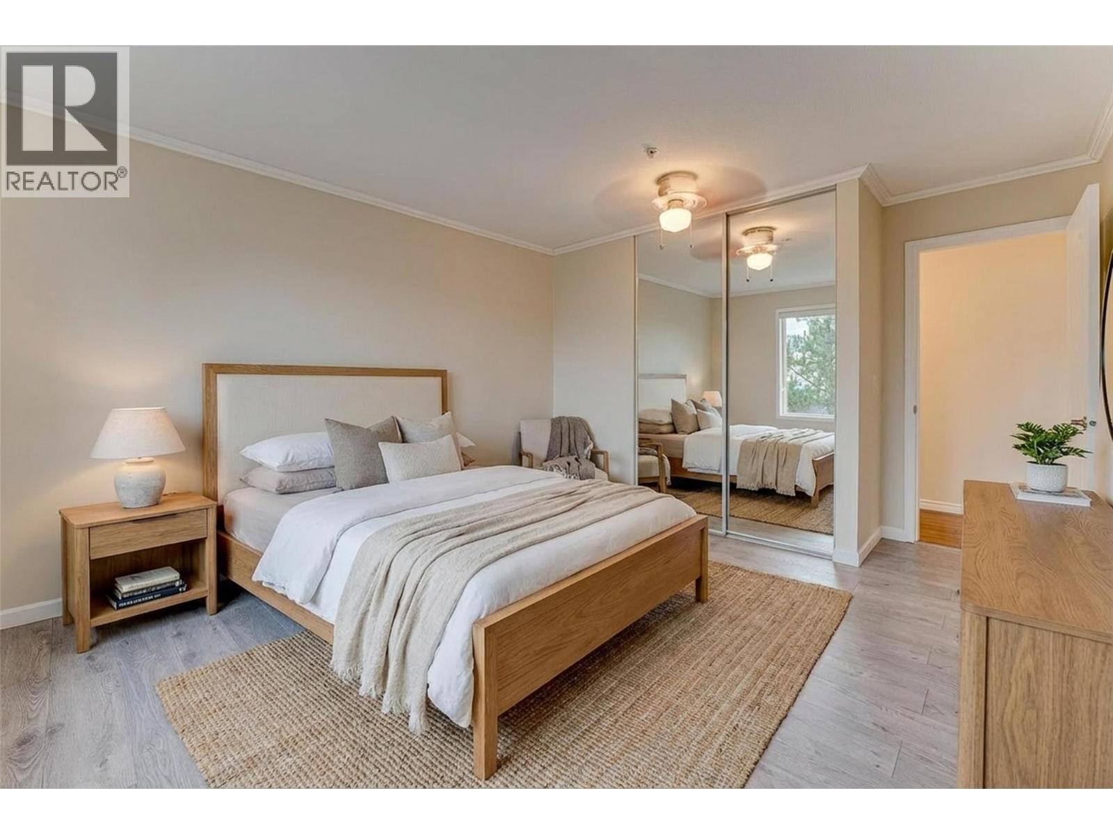 Welcome to Unit #102 at Imperial Ridge. With a fresh coat of paint, recently updated flooring, and a lovely kitchen, this 2-bedroom, 2-bathroom condo is truly move-in ready. The home is located in a well-maintained, all-ages building that has undergone extensive upgrades since 2022, including parkade improvements, building envelope work (windows, decks, stucco), a new elevator, and refreshed hallways with modern carpeting, lighting, and paint. Ideally located just steps from downtown Vernon’s shops, cafes, medical offices, and services, this quiet, south-facing home is filled with natural light and enjoys beautiful city views, with glimpses of Okanagan Lake. The spacious layout offers a modern kitchen with plenty of storage, opening into the dining area and comfortable living room. Enjoy the cozy gas fireplace on cooler days (natural gas included in the strata fee), and in summer relax on your private deck or stay cool with the newer wall-mounted A/C unit. The primary bedroom features a walk-in closet and full ensuite, while the second bedroom and full main bathroom provide flexibility for guests, a home office, or family. In-suite laundry with newer washer and dryer adds everyday convenience. Additional features include one secure underground parking stall, a storage locker, bike storage, and a common room. Strata fees include hot water, water, sewer, garbage, natural gas. Book your showing today! (id:26472)