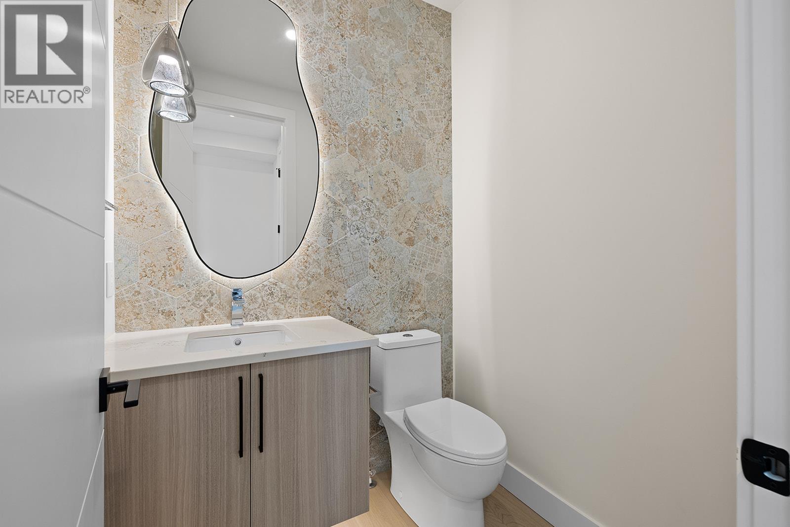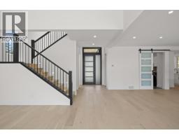 Brand-new, custom home in McKinley Beach’s desirable second phase, tucked at the end of a quiet cul-de-sac and steps from the new amenity centre. This 5-bedroom, 5-bathroom residence includes a legal 1-bedroom suite with separate entrance, parking, patio, electrical meter, and enhanced soundproofing, perfect for multigenerational living or rental income. The main floor is bright and open with hardwood throughout, soaring ceilings, a 3-sided electric fireplace, upgraded lighting, and a chef’s kitchen with quartz counters, walk-in pantry, and deck access with gas BBQ hookup. A dedicated office supports work-from-home needs. Upstairs, 3 bedrooms include a luxurious primary with heated floors, freestanding tub, and dual rain shower. The walkout lower level features 9’ ceilings, a rec room with fireplace, wet bar, guest bedroom/bath, and a pre-wired patio for a hot tub. Additional highlights include zoned HVAC with HRV and central humidifier, Navien on-demand water, central vacuum, security system with cameras, auto lighting in 3 baths, 8’ doors, and a fully irrigated, low-maintenance yard. Across from the amenity centre with pool, gym, tennis courts, and a short walk to the lake, beach, marina, and future winery. (id:26472)