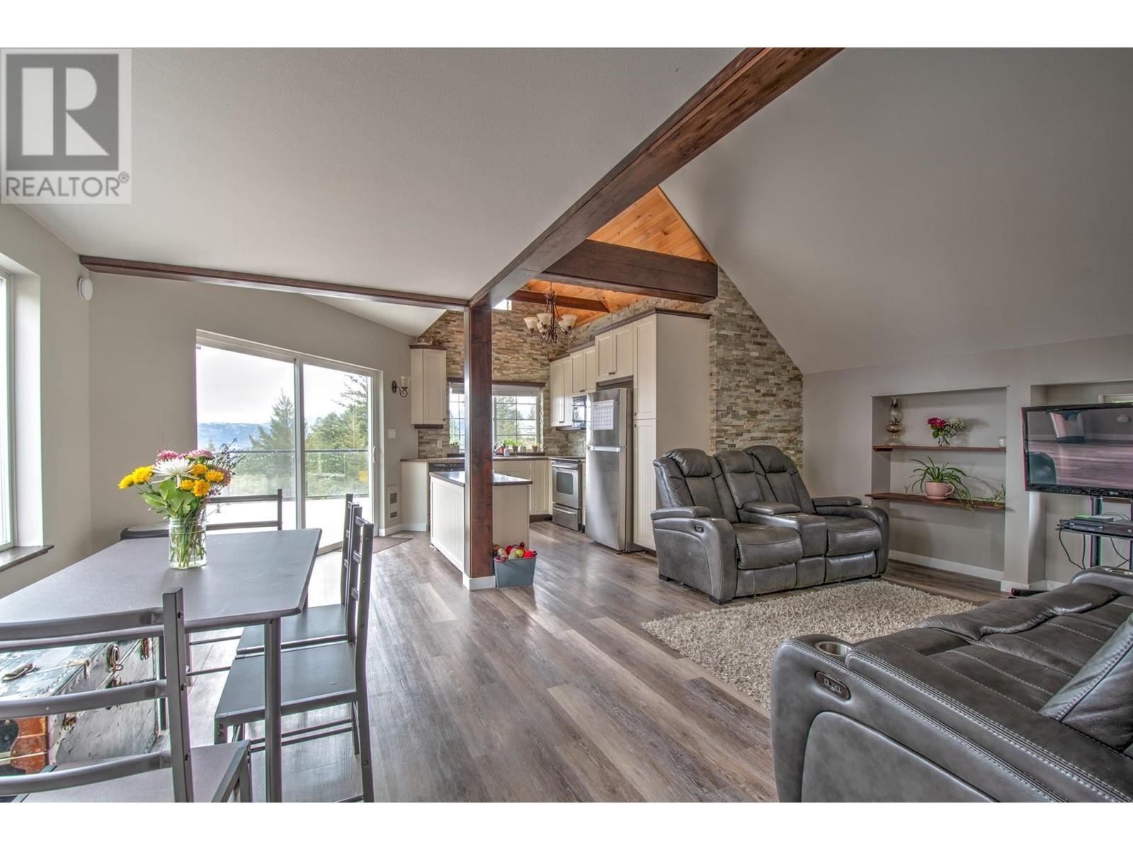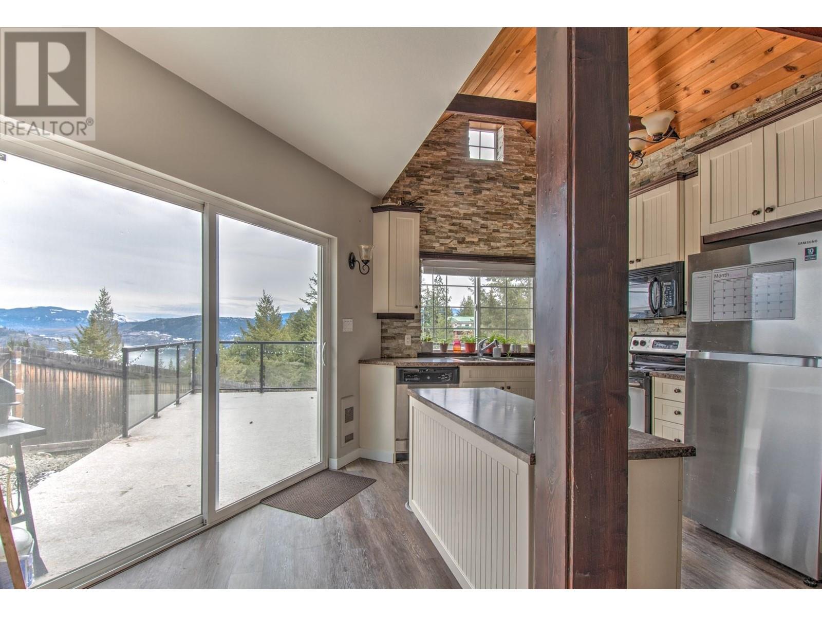 Breathtaking Lake Views! This stunning 2-3 bedroom home is a hidden gem, with the potential to effortlessly transform back into a 3-bedroom oasis. Nestled in a private, lush green sanctuary, the property is enveloped by pristine forest land, creating a tranquil escape that feels “away from it all.” Yet, it’s just minutes from an active community filled with dirt biking, hiking trails, and pristine beaches. The home is fully fenced, offering an ideal space for entertaining family and friends. Plus, enjoy the added convenience of a private RV parking area, perfect for adventure enthusiasts or extra guests. The park-like setting is beautifully complemented by a spacious upper deck and a peaceful lower seating area, perfect for unwinding. With large, bright windows framing the stunning views of Okanagan Lake, this home seamlessly blends nature with comfort. Vaulted ceilings and rustic wood beams add a touch of charm and elegance to the already beautiful space. The loft, once a third bedroom, can easily be converted back into one. This is truly a one-of-a-kind property that offers the best of both serenity and adventure! (id:26472)