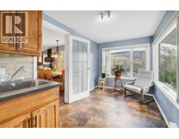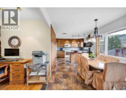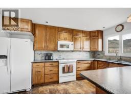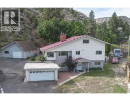 Lovely river valley views from this Dallas home with Agricultural zoning, double garage attached to house, detached heated shop 30' by 24' shop with addition. 200 amp electrical service for garage and house. Wood kitchen cupboards with large pantry and lots of cupboards, island, hardwood floors in living and dining room, hallway and 2 bedrooms, double garden doors out to shaded back patio and backyard. Laundry/utility/storage on the main floor off the kitchen. Potential for full bathroom. Parking behind the house. Master with garden doors to patio, 3 piece ensuite with walk-in closet. Downstairs is suitable with a rec room with a gas fireplace, 1 room suitable for a kitchen with rough-in for a bar sink and a man door to outside. 4 piece bathroom with jetted tub and heated floors. Attic area is awaiting your ideas. Newer higher efficiency furnace & central air, built-in-vac, aluminum roof on house. Compressor stays with shop. Property runs along Barnhartvale Road and is within walking distance of Dallas Elementary. (id:26472)
