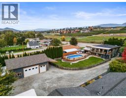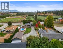Renovated 5 bedroom home on a large lot, in an exceptional location, with a suite, a pool, and a dream shop! Feel the serenity of country living with the convenience of a 5 min drive to Okanagan Lake or 10 min to downtown Kelowna. The interior and exterior of the home were recently renovated and it shows like near new. The kitchen is fully updated from top to bottom with pot lights, stainless steel appliances, a large island with gas cooktop, wall oven, and opens up to the living room with fireplace and feature wall. Upstairs you will find 3 generous sized bedrooms, an updated full bathroom, and a primary bedroom with private covered deck oasis. This deck is sure to please and outfitted with shades which offer both privacy and the ability to take in the panoramic views of the mountains, backyard, and surroundings. Downstairs there is a laundry room and one bedroom in law suite fit for the most discerning eye with separate entrance, kitchen, living room, fireplace, and french doors to its own patio. To the back of the home is a palatial style gazebo with custom built in barbecue station and dining table with overhead gas heater, which leads to the the pool and surrounding deck. In the backyard there is a 24 x 40 shop with mezzanine, bathroom, shower, office, 16' ceilings and carport. Custom quality build, not your typical cookie cutter. Perfectly configured to take full advantage of the 0.4 acre lot, this property ticks all the boxes and then some, this is a must see! (id:26472)