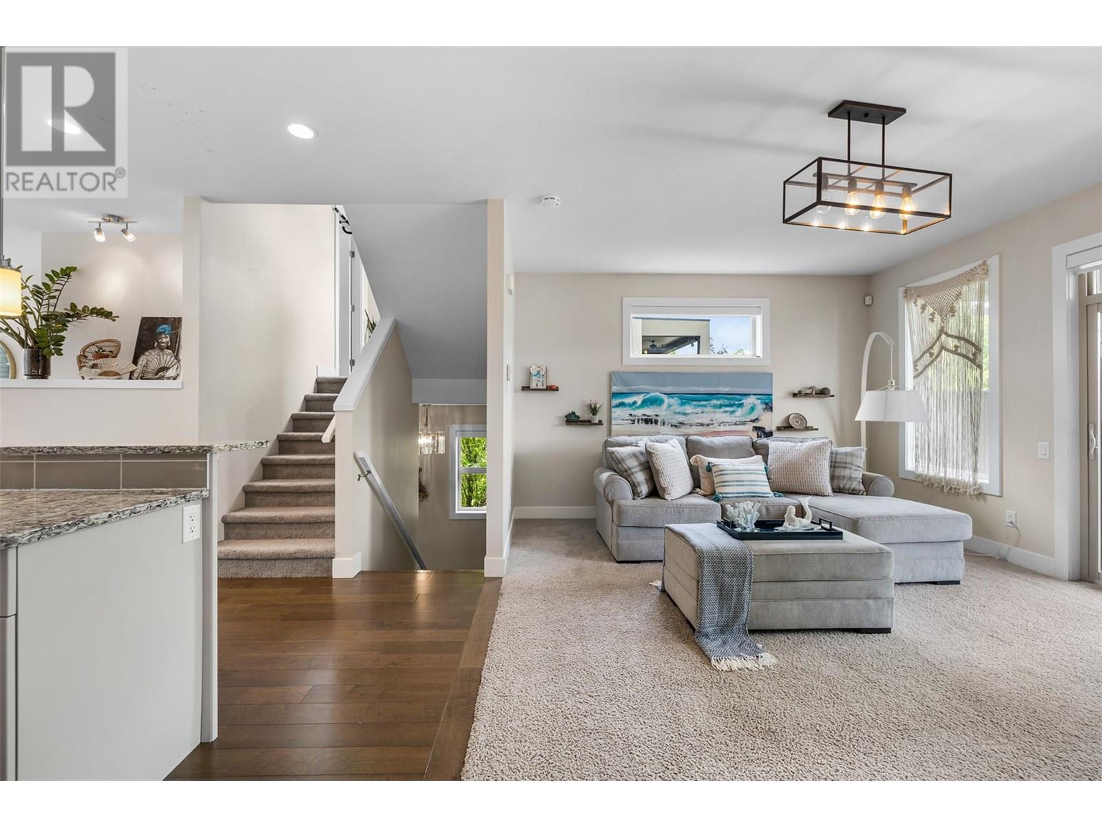 $363.17 MonthlyWelcome to this stunning 3-bedroom, 2.5-bath corner-unit townhome in the sought-after Gateway Urban Complex in West Kelowna. The open concept floor plan creates a seamless flow between the gourmet kitchen, spacious living room, and dining area, ideal for both everyday living and entertaining guests. Upstairs, the bedrooms provide flexibility for family, guests, or a home office, complemented by a second full bathroom for added convenience. The walkout basement offers versatile space, perfect for a home gym, theater room, or even an additional bedroom to suit your needs. The townhome’s rare double side-by-side garage provides ample space for two vehicles. Located in a prime West Kelowna location, this home is just minutes from Westbank’s vibrant shopping district, restaurants, and cafes, making errands and outings effortless. Nature lovers will enjoy proximity to local parks and beaches, perfect for leisurely strolls or relaxing by the water. The West Kelowna Library, Johnson Bentley Memorial Aquatic Center, and schools from K to 12 are all within a 10-minute drive, ensuring convenience and connectivity. (id:26472)