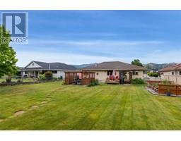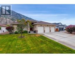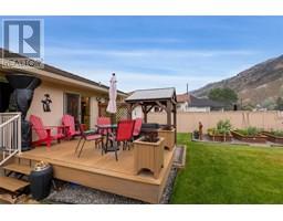 $275 MonthlyThis high-quality immaculate and extensively updated home is in a prime location on the 4th fairway of this 18 hole Championship layout. Updates include kitchen finishings, flooring, paint, furnace/AC in 2023, and more, and the easy-care and long-lasting stucco exterior and concrete tile roof make exterior maintenance easy. The open main floor plan features a large living/dining room with gas fireplace and room for a variety of furniture configurations. The generous kitchen includes granite counters, a butcher-block island/breakfast bar, walk-in pantry, and access to the rear deck and yard area. The spacious king bed-size primary bedroom features a large walk-in closet/dressing area, and a 3-piece ensuite. There is also a second full bedroom on the main floor, and a main floor laundry area with a large laundry tub, stacking washer/dryer configuration, and access to the 3-car garage. The lower level features a huge recreation/family room area complete with wet bar, the third bedroom, full bath, and a large den/flexroom. The basement also has walk-out exterior access with suite potential for a live-in/immediate family situation. The 3 car garage and large driveway makes parking for multiple vehicles a breeze. The beautiful fenced rear yard features a large deck with permanent vinyl plank finishing, a gas connection for the grill, raised bed gardens, and a beautiful view to the South Thompson Valley hills. All msmts are approximate and should be verified if critical. (id:26472)