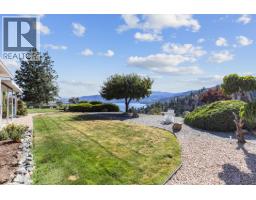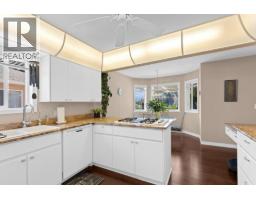 This beautifully maintained 3-bedroom, 2-bath no-step one-level rancher is tucked away in a peaceful, established neighborhood in Peachland. Ideal for those looking to downsize without sacrificing space or style, with no strata fees. The well-appointed peninsula kitchen comes with a new fridge and built-in convection oven, gas cook-top with grill attachments, granite counter and unique lighting. Formal living and dining rooms. Family room with gas fireplace and a breakfast nook. Custom stained glass details in the primary bedroom, living room, front door, and garage add warmth and character, setting this home apart with artistic charm. Primary suite with ensuite bath, custom steam shower, walk-in closet. Two additional bedrooms and full bath. Hardwood and tile floors throughout! Central vacuum. Laundry mudroom to double garage. Extra wide driveway. The fully landscaped yard backs directly onto the serene Trepanier Creek ravine, offering privacy and a tranquil natural backdrop. Enjoy lake views, a peach tree, raspberry bushes, and plenty of space to add a pool if desired. An underground sprinkler system keeps the outdoor space lush and easy to maintain, while the reverse osmosis water system, water softener, and central air conditioning provide modern comfort inside. The home is also wired for an alarm system and features upgraded plumbing with no Poly-B! With its ideal location, mature setting, and turnkey upgrades, this home invites you to settle into the Okanagan lifestyle. (id:26472)