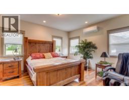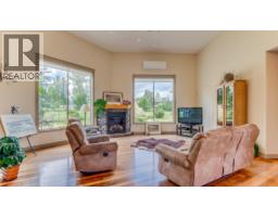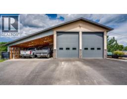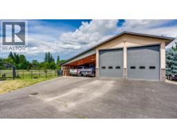 Rare find! Tucked away at the end of a dead end road is this amazing sprawling Custom Built Rancher on 3.9 acres with a huge deluxe shop! A welcoming stone entrance invites you in to a wide open living room with 14' ceilings, gleaming Hardwood floors, stone fireplace and picture windows that look out at your totally flat, fenced acreage! A lovely oak kitchen features granite countertops, eating bar, stainless appliances and roomy pantry. Family sized formal dining area with room to spare! Off the dining area, step out to a wonderful stone patio and fenced yard with lots of greenery and fenced pasture! Your plants will love the bright sun room off the dining area! Perfect set up of 3 bedrooms and two baths. The primary bedroom has a walk in closet and a full ensuite with jetted tub and glass shower, (step out to heated floors)! Good sized second bedroom and third bedroom is used as a den. Outside the mudroom/laundry is a wonderful private patio with hot tub! Over the garage is massive games room/rec room with electric fireplace! This spacious double garage (27x27) has the Utility room/Boiler and storage at the back. Impressive horseshoe driveway, entrance that is gated and paved. The massive shop (27X37), is gas heated and has a woodstove too! There is an equally large lean-to storage for your toys. New Lennox heat pump system plus gas in floor heating. Outside is a central water feature! Would make a great hobby farm all fenced too! Lots of water! Pride of ownership here! (id:26472)