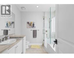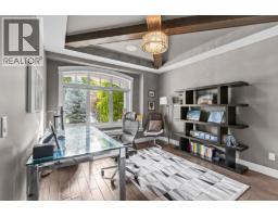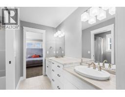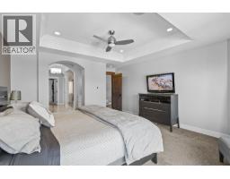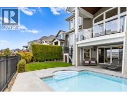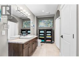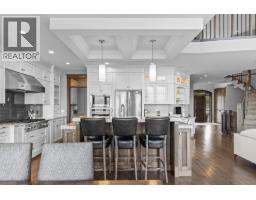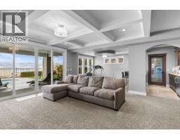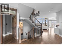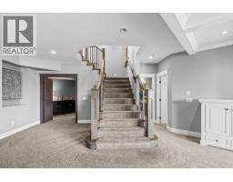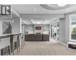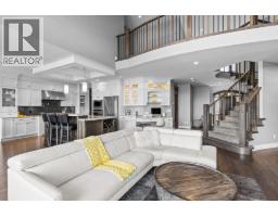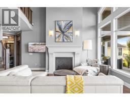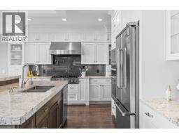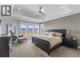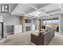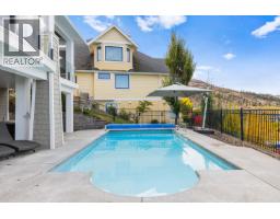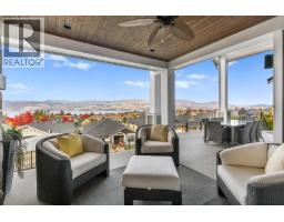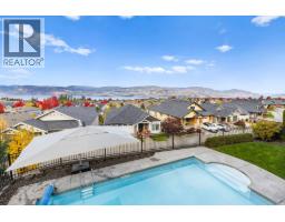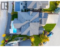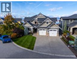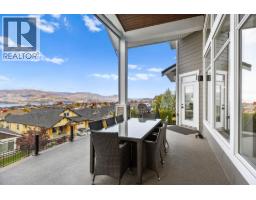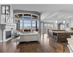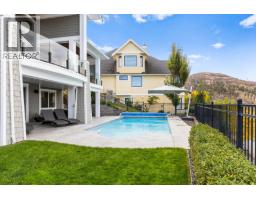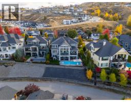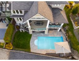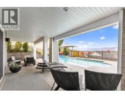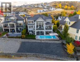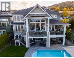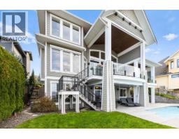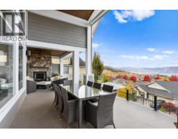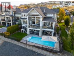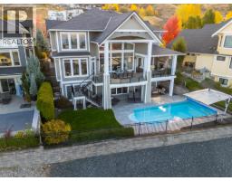 This huge, beautifully designed 6-bedroom, 5-bath, 5,350sq. ft. luxury residence showcasing breathtaking lake views from all three levels and an inground saltwater pool. This home perfectly blends craftsman charm with modern contemporary elegance. The inviting entry features a solid wood door and hand-scraped engineered hardwood floors, leading to a dramatic two-story great room with a balcony overlook and concrete feature fireplace. The open-concept kitchen is a chef’s dream with duotone cabinetry, granite countertops, raised eating bar, gas stove, built-in oven, and a walk-through butler’s pantry. Also on the main floor are a den/office, powder room, and a secondary master suite with 4-piece ensuite. Off the kitchen, step out to a spacious covered deck with topless glass railings, outdoor gas fireplace, electric privacy screens, and ample space to relax and enjoy the panoramic views. A grand staircase with in-stair lighting leads to the upper level with two generous bedrooms sharing a Jack & Jill bath, a bonus room or extra bedroom, and a spectacular primary suite featuring a spa-inspired ensuite, custom walk-in closet, and direct access to laundry. The bright walkout lower level features a wine cellar, wet bar, games room, theater, and a fifth bedroom with full bath. A huge oversized double garage offers ample space for vehicles and recreational gear. Located in prestigious Kettle Valley, at the end of a flat, family-friendly cul-de-sac perfect for kids. Amazing home. (id:26472)