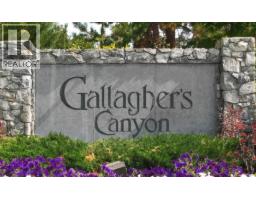 $319 MonthlyOverlooking the lush 2nd fairway, this impeccably cared-for rancher offers an elevated lifestyle in the heart of Gallagher’s Canyon. Designed for both elegance and ease, the two-bedroom home showcases soaring ceilings, dual sided gas fireplace, and a bright, flowing floor plan that seamlessly connects indoor and outdoor living. Step outside to a private patio with serene golf course vistas—perfect for hosting friends or enjoying quiet moments surrounded by nature. The spacious kitchen features stone countertops, custom cabinetry, and an open connection to the dining and living areas. The spacious primary suite is a true sanctuary, highlighted by expansive windows, direct access to the patio, a walk-in closet, and a luxurious ensuite complete with a deep soaker tub, walk-in shower, and dual sinks. Additional highlights include a separate family room, full guest bathroom, laundry room, and a double garage. Living in Gallagher’s Canyon means embracing an unparalleled resort-style lifestyle with access to two championship golf courses, tennis courts, indoor pool, fitness centre, hot tub, games room, art studios, and miles of scenic walking trails. All of this, set within a welcoming community and just 15 minutes from downtown Kelowna. (id:26472)