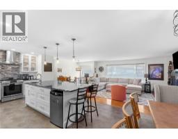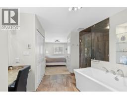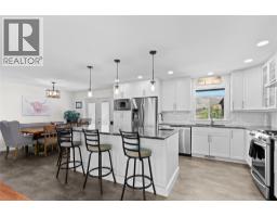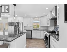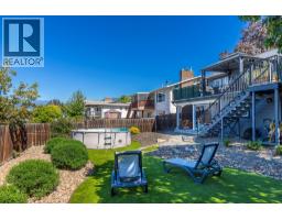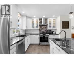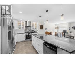 Welcome home! This move-in ready 5 bedroom, 3 bathroom plus den residence provides exceptional space for a growing family. Extensively updated in 2018, it showcases a bright, open concept kitchen, dining and living area. Ideal for entertaining, the chef’s kitchen features quartz counters, modern white soft-close cabinetry, a gas range, and an oversized island with bar seating. The sunlit living room offers hardwood floors, plenty of room for furnishings, and a cozy wood-burning fireplace. The main bath includes dual sinks, heated tile floors, and a tiled shower. Down the hall sits one of the 5 bedrooms, while the spacious Primary retreat at the end includes a spa-like ensuite with heated floors, walk-in shower, oversized soaker tub, built-in vanity and private water closet. French doors open to a serene patio and hot tub, the perfect spot to unwind while enjoying the view. The expansive upper deck is ideal for outdoor dining or lounging, with direct access from the dining room and Primary suite. Downstairs, a generous recreation room with gas fireplace, three additional bedrooms, laundry with 3-piece bath, and a den/office with separate entrance provide endless options. A covered lower patio extends your living space outdoors, backyard is low-maintenance with synthetic turf and rock scaping. With ample storage, versatile spaces, and a layout that balances comfort with style, this home is truly move-in ready. Book your private showing today and start imagining life here! (id:26472)