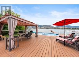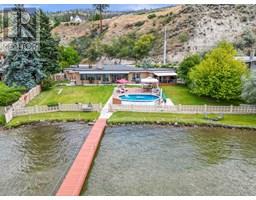 One of a kind massive nearly half Acre waterfront lot zoned R4-L Small-Scale Multi-Unit Residential - Large on exclusive Skaha Lake with approx 123' of waterfront and a dock! This west facing lot is flat, serviced with underground lines, and in the perfect location which is close enough to walk to a waterfront park, public beach, marina, dining, and just far enough away to get away from it all. The 2389 sq ft mid century modern rancher is updated and has 11' vaulted ceilings in the spacious kitchen, massive windows bringing in all the natural light you crave and panoramic lake/mountain/beach views from nearly every room. You will love the private patio courtyard in the front and covered deck with bbq station in the back. There is suite potential as primary bedroom has its own wet bar with plenty of space, ensuite, sitting area, separate entrance, and covered deck with lake view. There is ample parking whatever your needs on this beautiful large lot and a detached triple car garage for all your toys, it has development/subdivision potential and a foreshore permit with the potential to extend the current dock to a 120' dock! Secure, gated access, fully fenced, move in ready, perfect for any developer or those looking for a generational or long term holding property. One of the last large waterfront lots left and in one of the most desirable locations in the South Okanagan, this is your chance! (id:26472)