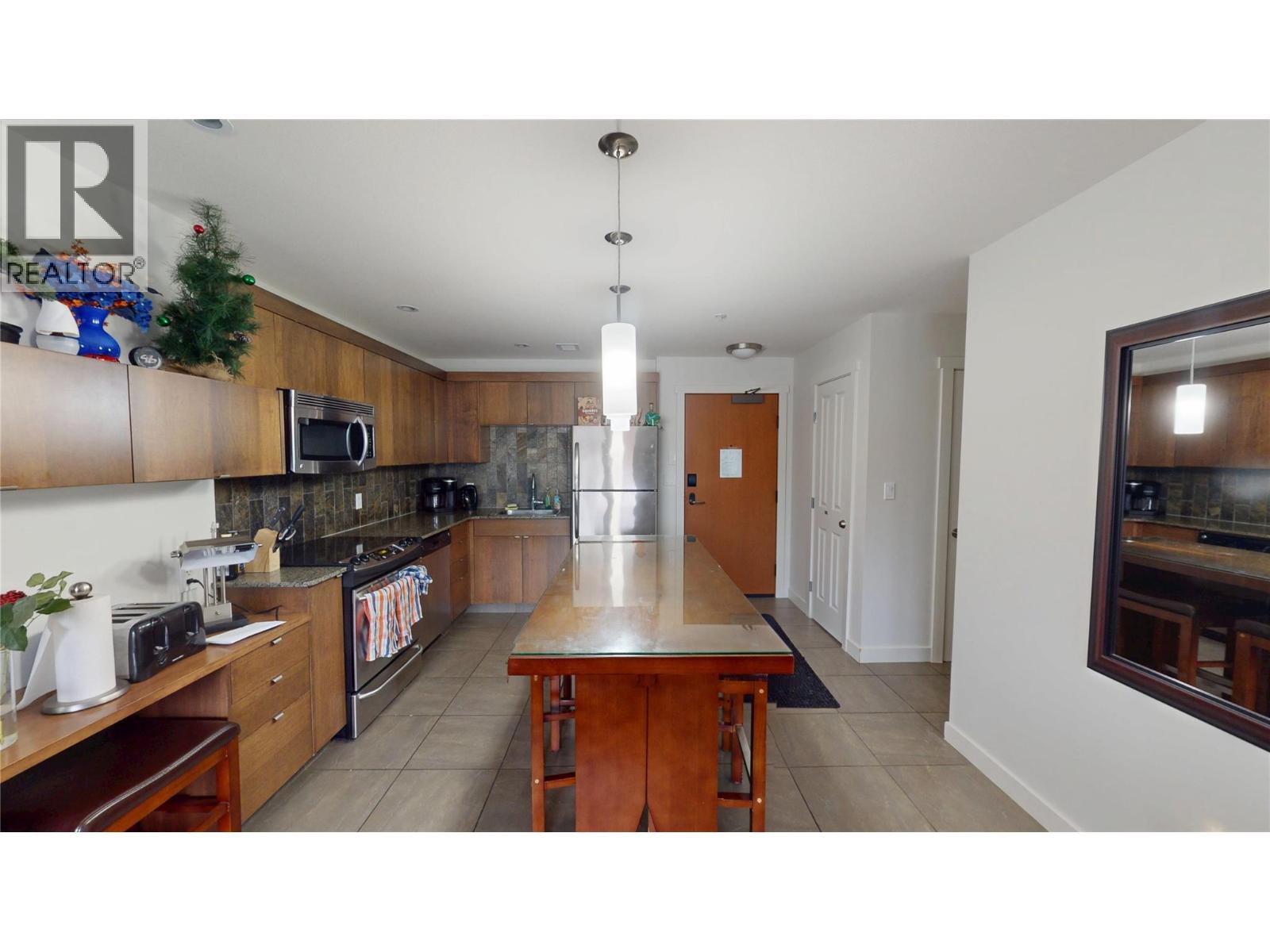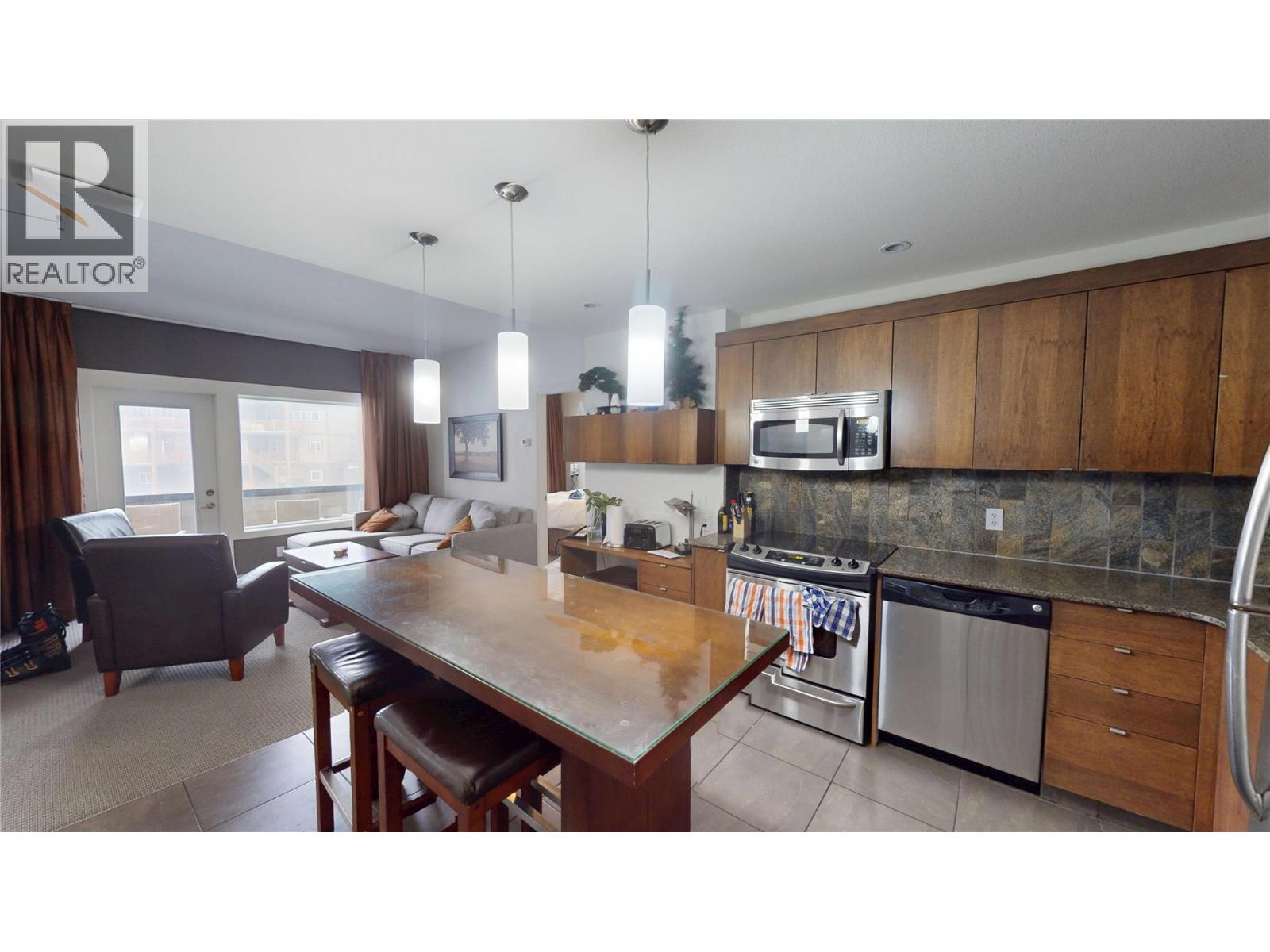 $832.15 MonthlyThis well-appointed Condo offers a blend of comfort and convenience with quality finishes throughout. The kitchen features granite countertops, a stainless steel appliance package, and durable tile flooring ideal for both everyday living and entertaining. The open living space is warmed by an electric fireplace and enjoys views of the pool and hot tub. Backing onto the ski hill, the property offers a peaceful natural setting and scenic surroundings. The primary bedroom includes a spacious 5-piece ensuite bath, while a second 4-piece bathroom with a cheater door adds functionality for guests or family. A stacked washer and dryer are conveniently tucked away to maximize space and efficiency. Combining modern finishes, thoughtful layout, and an exceptional location, this Condo offers comfortable living with desirable amenities and beautiful views. (id:26472)