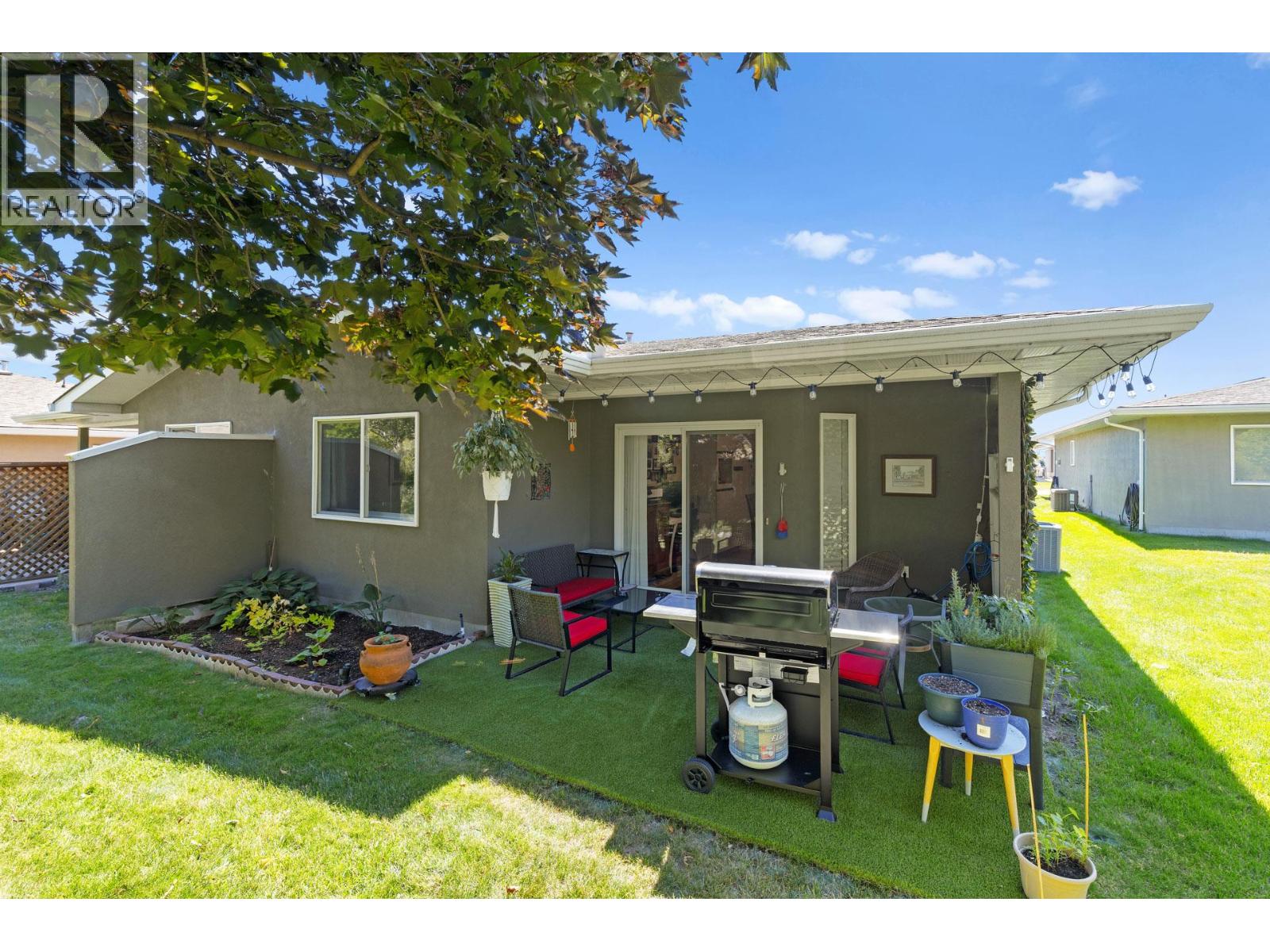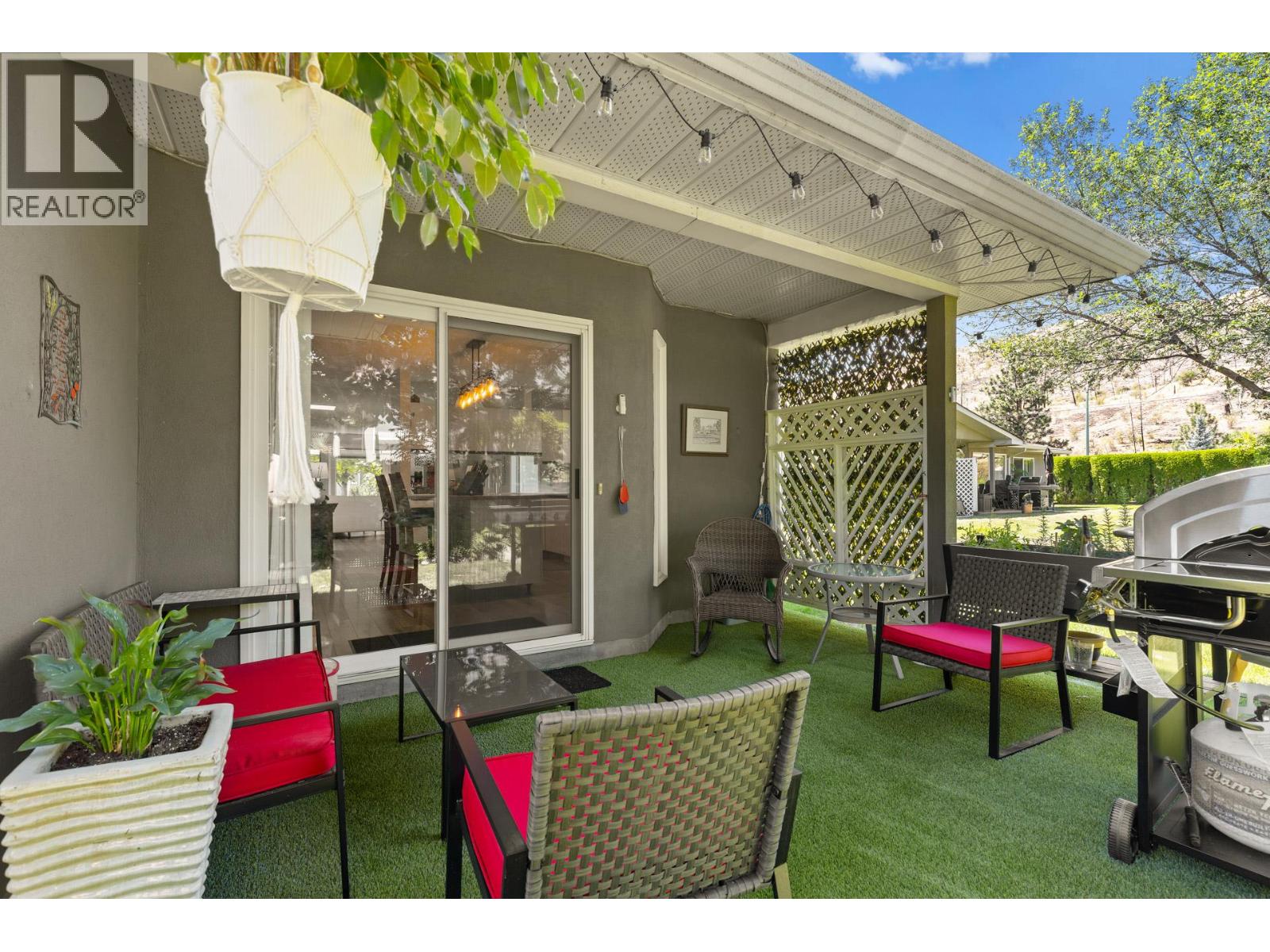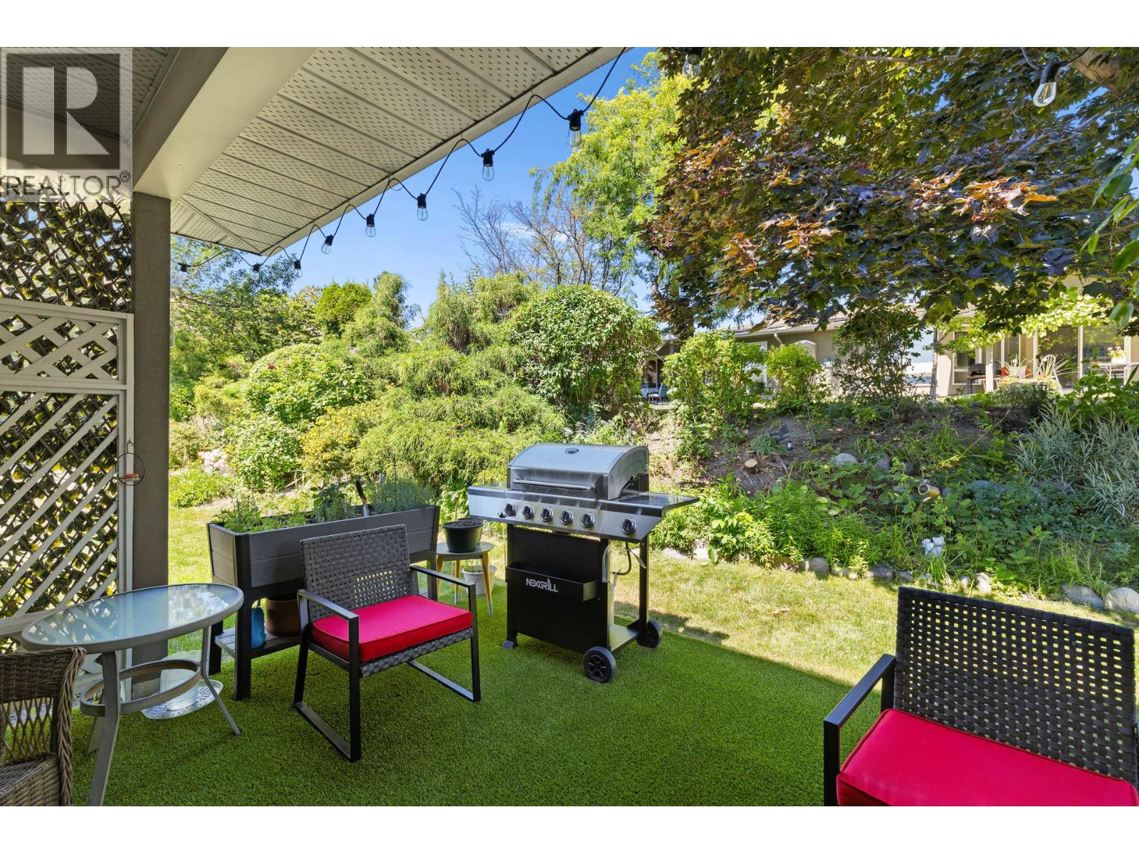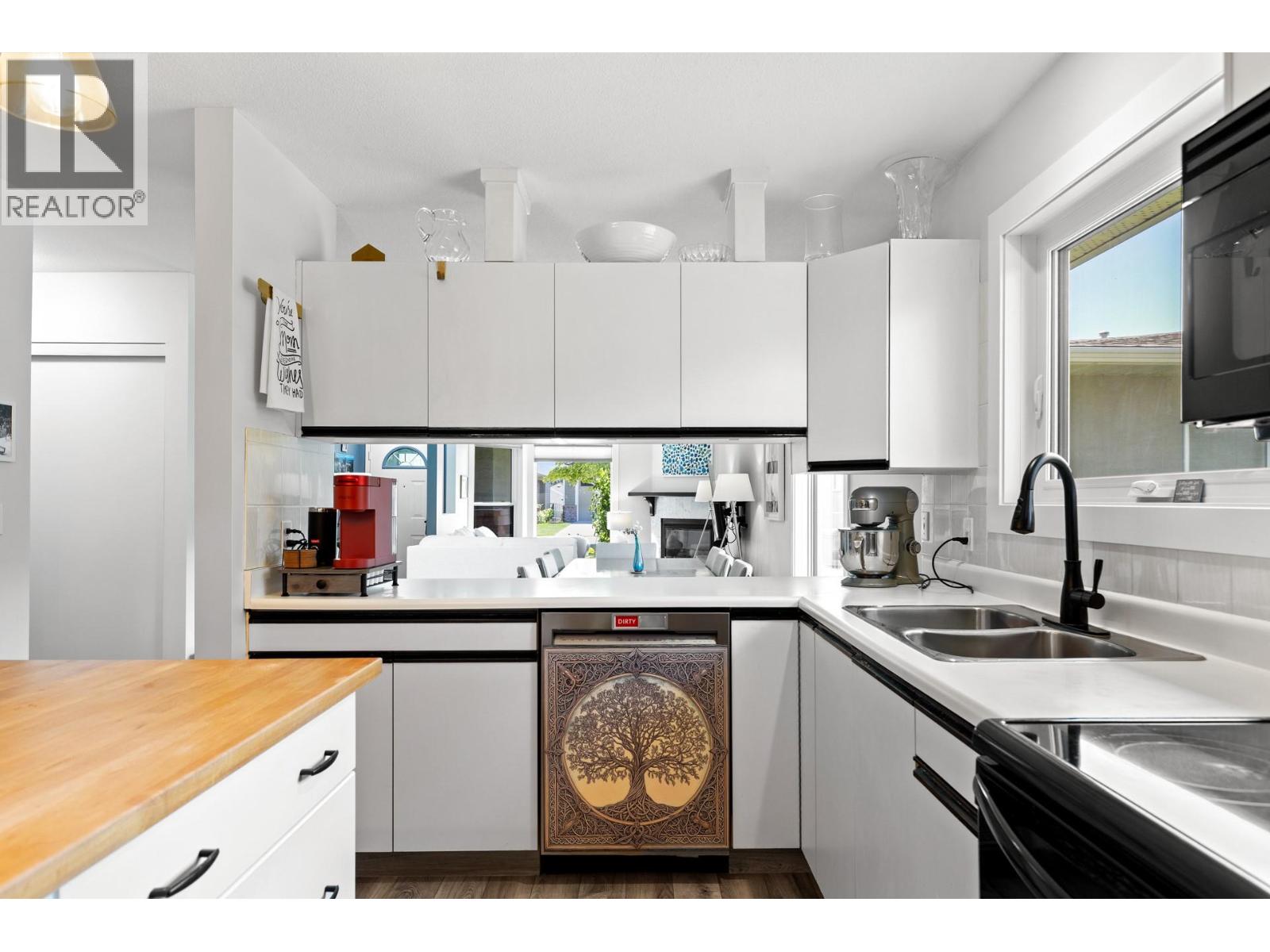 Welcome to Canyon Ridge – A Tranquil 55+ Gated Community. This beautifully maintained 2-bedroom, 2-bathroom semi-detached rancher-style townhome is tucked into the heart of Canyon Ridge, a peaceful and impeccably cared-for 55+ gated community. Offering over $40K in thoughtful upgrades—including new furnace, Air conditioning, hot water tank, windows, upgraded plumbing and much more! This home strikes the perfect balance between comfort and Charm. Step inside to discover a bright, airy layout with open-concept living and a cozy gas fireplace. The spacious and bright kitchen features a dine-on butcher block island with built-in storage and a sunny nook ideal for a desk or reading chair. Large dining space makes entertaining effortless. Enjoy morning coffee or quiet evenings on your private covered patio that backs onto a gentle waterway, an ideal setting for reading, reflection, or simply soaking in the serenity. The primary suite is tucked away for privacy with lush landscape views and a four-piece ensuite. Roller blinds throughout add modern functionality and style. Additional features include a single-car garage with extra storage, low strata fees, and access to a vibrant clubhouse. Located just minutes from the Gellatly Nut Farm, scenic Glen Canyon Regional Park, Hiking and waterfront trails, and the beaches of the Okanagan—you’re perfectly positioned to enjoy nature, connection, and the best of West Kelowna living. Book your showing today! (id:26472)