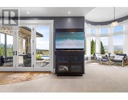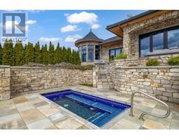 Legacy estate where luxury, privacy, and sophistication converge. Nestled on 10 acres amid 50 acres of vineyard, this 13,000 sq. ft. masterpiece offers breathtaking views from sunrise to sunset. Designed for discerning buyers, this bespoke estate features 4 bedrooms with ensuites and walk-in's, nanny suite, and a standalone 2-bedroom guesthouse. The home features an 8-car interactive garage, a bright gym, his-and-hers pool facilities with laundry, a traditional wine cellar, a theatre, and an elevator. Luxurious touches include five gas fireplaces, a gourmet kitchen, a spacious office with a private balcony, and an outdoor living area with a massive inground pool showcasing panoramic lake views. The primary suite offers a private lounge, pool deck access, his-and-hers closets, laundry, and an unparalleled bathtub view. Amenities include his-and-hers pool facilities, outdoor shower, a grand pool deck, hiking, biking, and riding trails, plus a huge windowed quonset for equipment, storage or hobbies. A paved driveway winds past vineyards, beneath evergreens, and alongside manicured gardens, passing a charming gatehouse to the grand entrance. More than a home, this is a rare opportunity to own a private retreat where every detail enhances life’s finest moments. Schedule your private tour today and experience Okanagan luxury living at its pinnacle. Lower 28-acre property is also available, potential for vineyard facilities, farming, or equestrian use—same listing agent. (id:26472)