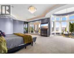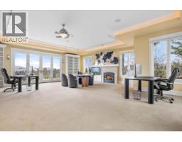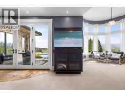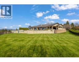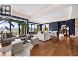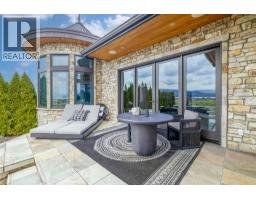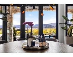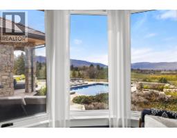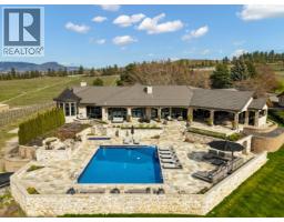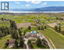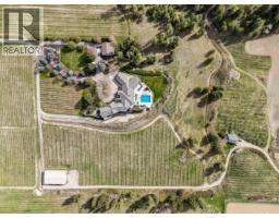 A rare and remarkable estate opportunity, this scenic 9.23-acre property is set just 10 minutes from the heart of Kelowna, offering privacy, scale, and breathtaking lake and city views. Surrounded by manicured gardens, the main residence is thoughtfully positioned to overlook rolling farmland below, with a poolside setting designed to capture the beauty of the Okanagan landscape. The luxury home spans over 13,000 sq. ft. and is complemented by a detached 2 BR guest house, ideal for extended family or guests. A grand front entry opens to an expansive main living area where open-concept living, formal and casual dining, and a gourmet kitchen that flow seamlessly to the outdoor kitchen and pool, creating an exceptional setting for entertaining. The main-level primary suite is a private retreat, offering all the features expected in a home of this calibre. The lower level is accessible from two separate points and includes additional living rooms, multiple bedrooms, and a beautifully finished wine room. An oversized double garage is paired with a lower-level garage accommodating an additional 8–10 vehicles, while a separate outbuilding provides ample space for equipment or storage. Approximately 2.5 acres are planted in vineyard, with potential for an additional 5 acres, supported by an artesian well for irrigation. This estate blends luxury living with agricultural potential—an extraordinary offering in one of the region’s most desirable settings. (id:26472)