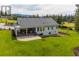 Welcome to this exquisite 2023 build, nestled on a massive and private 2.5-acre lot, offering a tranquil escape without sacrificing convenience. Behind the custom hemlock door, this 4 bed + den / 4 bath home spans 4,487 sqft, meticulously crafted to Step Code 4 Energy Guide standards for outstanding efficiency. The main level showcases a gourmet kitchen with an impressive 10' × 5' single-slab quartz island, maple cabinetry, a full butler’s pantry, and a premium KitchenAid appliance package with a 6-burner gas stove and 42"" built-in fridge. Soaring vaulted ceilings define the open living area, while the main-floor primary suite offers a spa-like ensuite with mitred tile, heated floors, and a maple vanity with automatic kick lighting. You'll find an additional bedroom, 2 bathrooms, den, mud room, and attached, oversized triple-car garage to complete the upper level. Downstairs, the walk-out lower level is perfect for entertaining, featuring a wet bar in the expansive rec room, a gym (wired for a home theatre), and two more bedrooms with a full bath. Outside, a trex-clad wrap-around deck overlooks the fully irrigated yard, a 500 sqft paver patio with conduit ready for a future pool and hot tub, dog run, & fire pit. Only one neighbour, endless possibilities, and every finish already done to a luxury standard—this is acreage living without compromise. Don't miss your chance on this stunning home, contact our team to book your private viewing today. (id:26472)