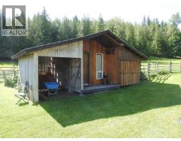 Beautiful 383 acre farm/ranch property on 5 Titles. Approximately 326 open acres with gravity irrigated hayfields, open and treed pastures, balance of land is treed gulley with Bigg Creek running down the bottom. 169 acre ft of irrigation water licence from Bigg and Sigalet Creek. Reliable drilled Well indicating 20 GPM. Comfortable 4 bed / 2 full bath home with vaulted ceilings and finished walk out basement offering fantastic valley views. Outbuildings include a 28'x32' Shop and 72'x104' Hayshed, both with hydro service. Set up for cattle with sorting and calving pens/corrals, fenced and cross fenced. Property located 20 minutes from Lumby and close to Mabel Lake Provincial park. (id:26472)