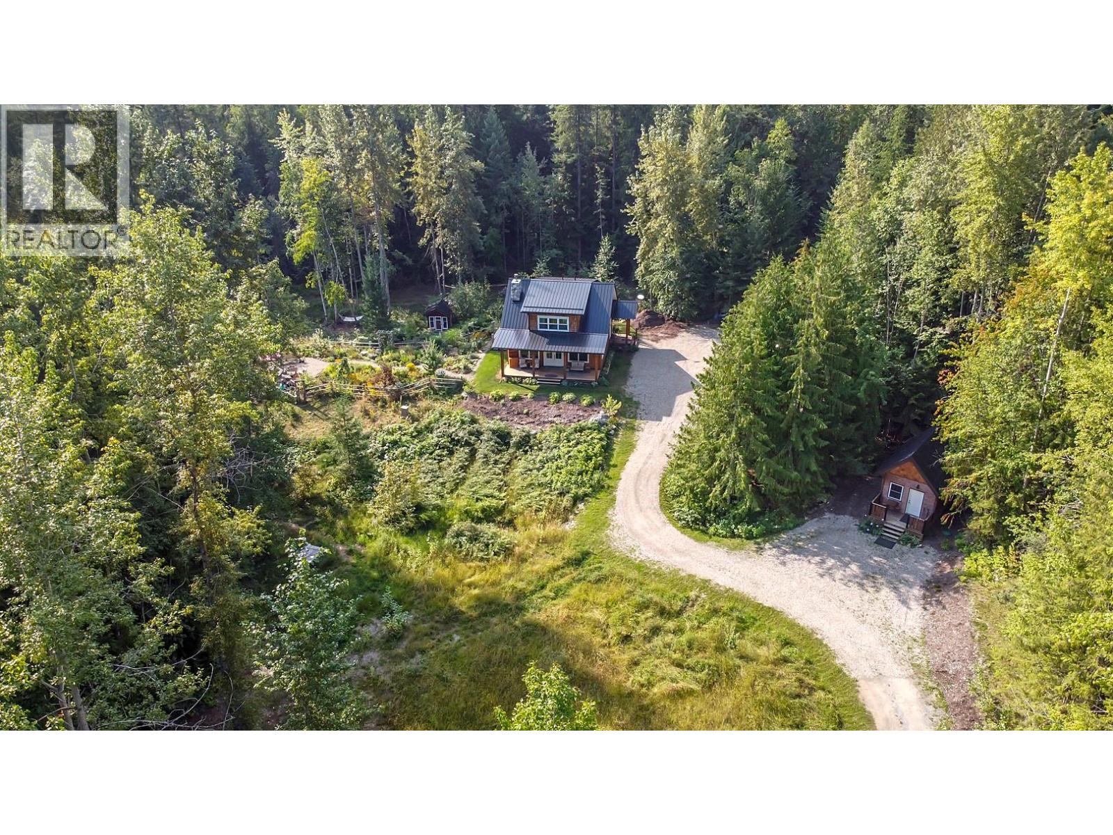 Tucked into the base of the Larch Hills, this magical 4-acre retreat feels like it’s been painted into the landscape. Winding garden paths & forest surround a 2021-built home that glows with natural woodwork & light, along with a picture-perfect ski/garden cottage tucked away for cozy apre ski stays. Two wells provide abundant water—one for the flourishing gardens & another for the home & cottage. Inside, the kitchen forms the heart of the home—bright, striking, & crafted with rich wood features. Upstairs, the primary suite is a serene escape, joined by a charming den, a generous second bedroom, & a spa-like bath complete with a classic clawfoot tub. The wide front porch offers privacy & quiet, where no neighbours—or even the guest cottage—are in sight. The partially finished lower level provides a cozy family room, workshop, & ample storage. Whether it’s evenings by the fire, tending gardens through summer, or retreating into the stillness of the forest, this property is a true sanctuary—private, warm, & filled with character. Adding to the charm, is a quintessential chicken coop. A wood stove offers cozy warmth on winter evenings, complemented by the efficiency of a heat pump for year-round comfort. Practicality meets possibility with loads of parking & a flat, open area ideal for a future garage or shop. Every detail speaks to the pride & care with which it was built. Measurements care of iGuide & should be verified by a buyer, along with all information in the listing. (id:26472)