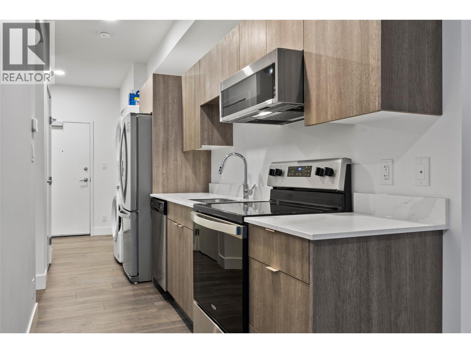$196.89 MonthlyWelcome to The Lightwell, a modern concrete building in the heart of downtown Kamloops. This stylish 1 bedroom, 1 bathroom condo offers 506 sq ft of thoughtfully designed living space with contemporary finishes throughout. The open-concept layout features a sleek kitchen with stainless steel appliances, modern cabinetry, and efficient use of space—perfect for urban living. Large windows and a private balcony overlook the building’s lightwell, providing natural light and a quiet, sheltered outlook. Additional features include in-suite laundry, a convenient same-floor storage unit, 1 secure underground parking stall, and bike storage. Residents also enjoy access to a common rooftop patio, ideal for relaxing or entertaining while taking in the city atmosphere. Located steps from restaurants, shopping, transit, and entertainment, this condo is an excellent opportunity for first-time buyers, professionals, or investors seeking downtown living at its best. (id:26472)