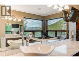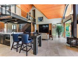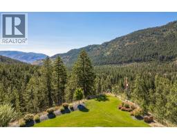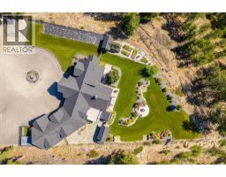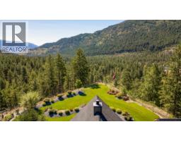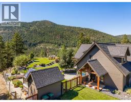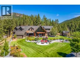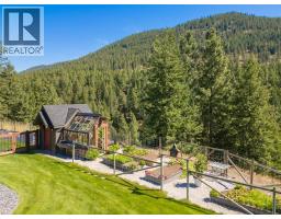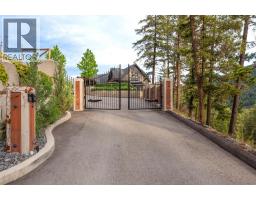 Presenting this exquisite estate property in Peachland. Offering a 6.22 gated acreage, this property is majestic, manicured and has been exceptionally designed to create a park like setting, and offer the ultimate in privacy. This chalet style build has been designed with exceptional craftsmanship and custom finishing's throughout to include wood lined ceilings, a brand new chef-life kitchen with butler’s pantry, timber beams, wood burning fireplace and summer kitchen. Upon entering the main house, the 25ft cathedral ceilings with bifold doors integrates the indoor/outdoor ultimate living. Open concept main living area with the Primary Suite on the main floor with a luxurious ensuite facing the mountains and glass garden green house. On the upper level you’ll find 2 generous sized bedrooms and lofted area that overlooks the great room below. The bar/games room includes a private deck for entertaining at sunset. This 2nd level also connects the most charming 2 bed legal suite situated over the 4 car garage, complete with separate entrance, and private yard with gazebo. Or integrate to a 5 bed home. This estate presents an incredible opportunity with the upper property hosting a solar paneled commercial space, featuring a board room/office and 3 bay workshop with an abundance of space for all equipment, including a new RV parking pad with service, water and sani-dump. Minutes to downtown Peachland and West Kelowna. Virtual Tour, Drone and Video provided to capture it all. (id:26472)