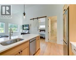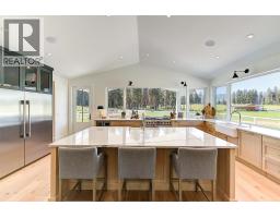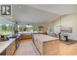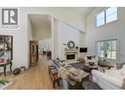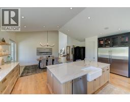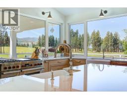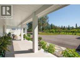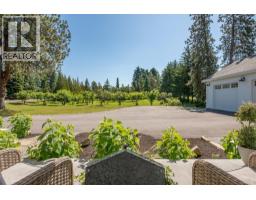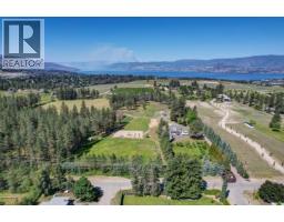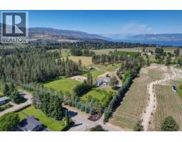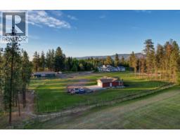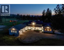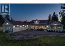 Picturesque & peaceful 12 acres in South East Kelowna. You will LOVE this near new MODERN farmhouse that blends timeless country elements with modern design and offers convenient one-level living. Finished with the utmost attention to detail & quality throughout including oak plank hardwood flooring, quartzite counters, brass hardware, custom tile work. The main living spaces are open & bright flowing seamlessly from the kitchen, dining & great room lending itself to creating family-oriented spaces for gathering and hosting. Great room features a custom cast, wood-burning fireplace with vaulted ceilings. A highlight of this home is the gourmet kitchen with professional appliances, an over-sized island and expansive windows bordering the kitchen capturing the stunning acreage views. Primary suite is a tranquil retreat with a show stopping en suite featuring a soaking tub, large white tiles extending up the walls, an open shower, gorgeous wood vanity. Multiple points of access open to the patios and wrap around porch. Separate access to the One bedroom suite. Basement is perfect for a home theater. Enjoy the backyard oasis with a pool and lounging area. Property offers a SECOND detached 2 bedroom home, + huge detached workshop, fenced for livestock & small orchard with variety of fruit trees. Incredible location with a close proximity to trails for hiking, biking, and horseback riding. Ideal setting for those in search of the tranquility of acreage living. (id:26472)