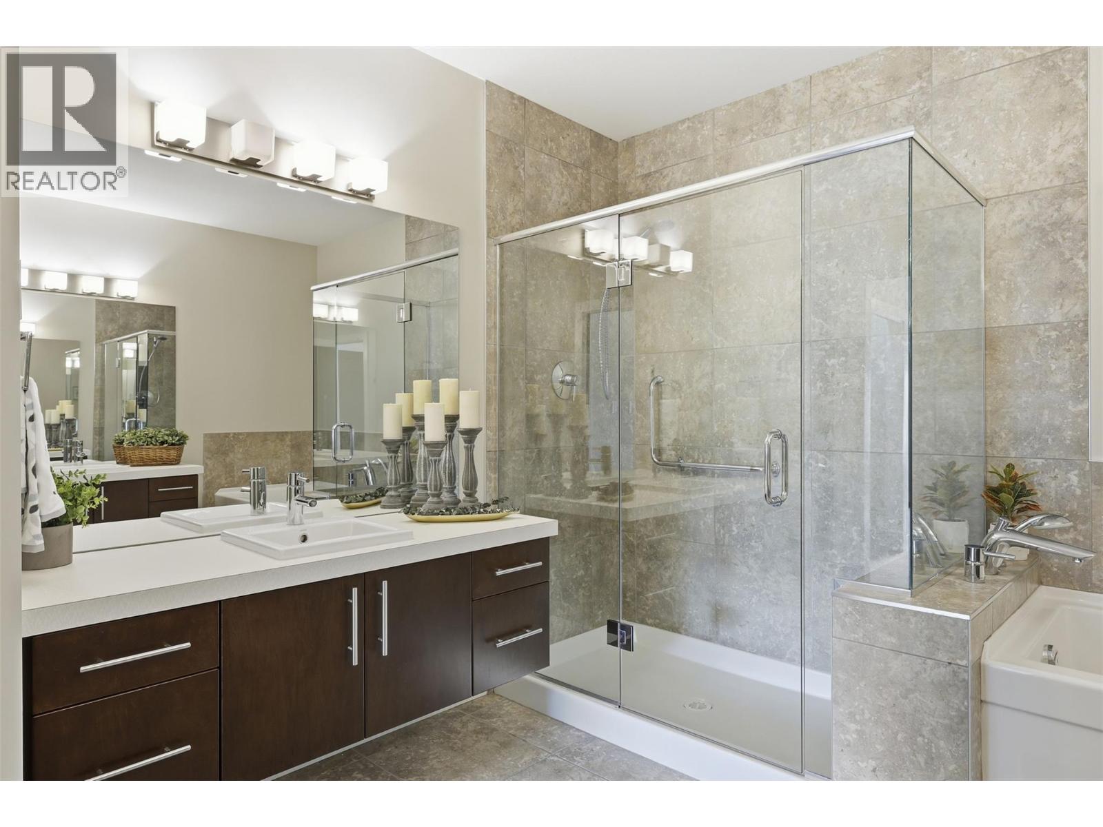 $411.44 MonthlyExperience elevated downtown living in this rarely available penthouse suite offering over 1,343 sqft of prime indoor living space in one of Kamloops’ most sought-after buildings, The Mosaic - where opportunities like this seldom come to market. This exceptional 2-bedroom plus den residence is thoughtfully designed with custom-built closets throughout, and a den featuring a built-in desk and shelving, ideal for a refined home office and has additional walk-in storage complete with custom built-in shelving. Both bathrooms are enhanced with heated floors, adding everyday comfort and a spa-like touch. Expansive windows showcase stunning city views, flooding the space with natural light and enhancing the open, sophisticated feel. Step outside to your private rooftop patio, a true extension of your living space, complete with a gas fireplace and garden boxes, perfect for entertaining, relaxing, or enjoying peaceful evenings above the city. Adding to the appeal are two dedicated underground parking stalls, a secure storage locker, and access to a convenient on-site dog wash station. Located in the heart of downtown, you’re just steps from shopping, dining, and the hospital, offering unmatched convenience and walkability. Penthouse suites in this building are rarely offered, so act quickly to secure this exceptional urban lifestyle. All measurements approx.; verify if important. (id:26472)