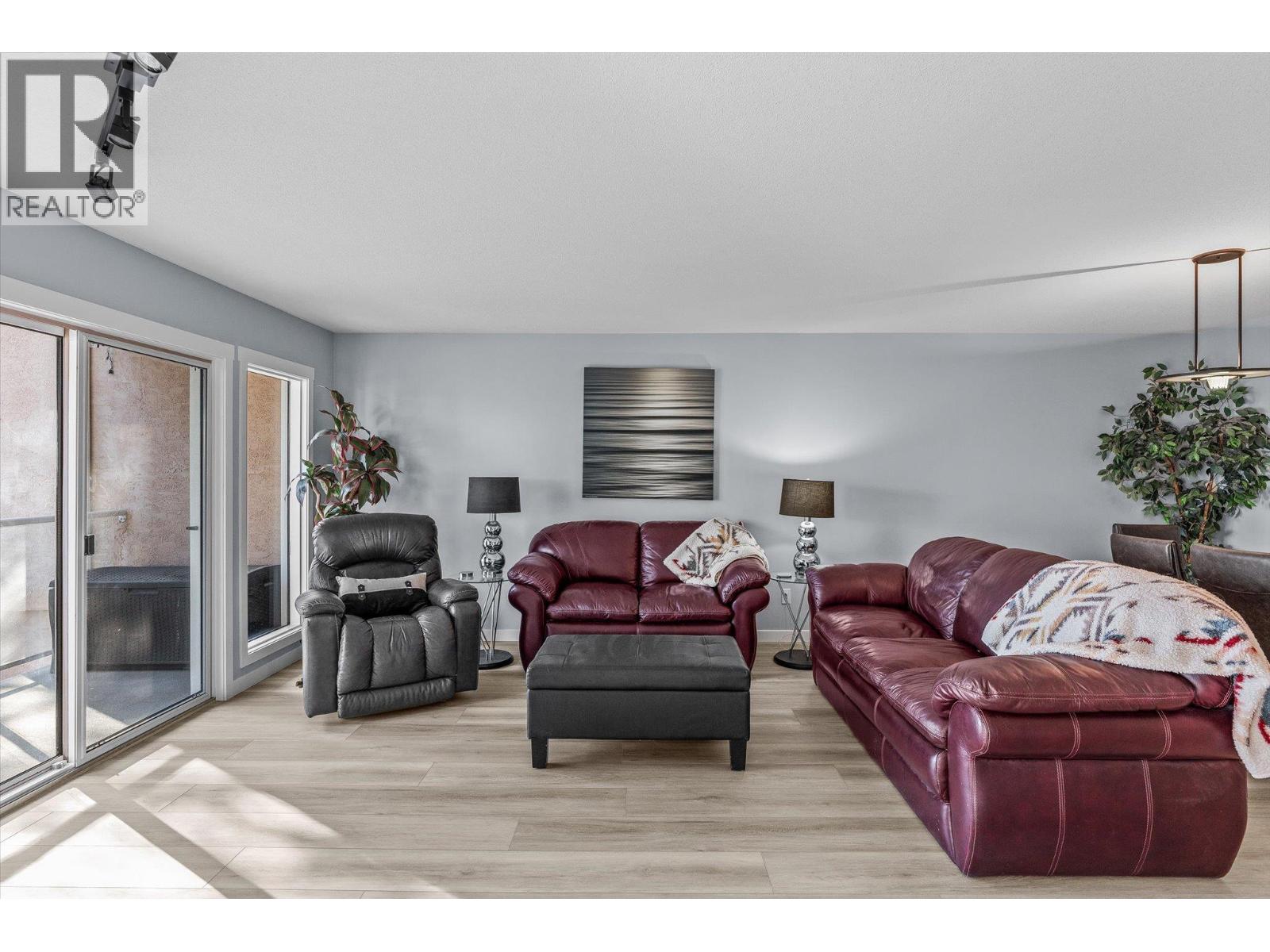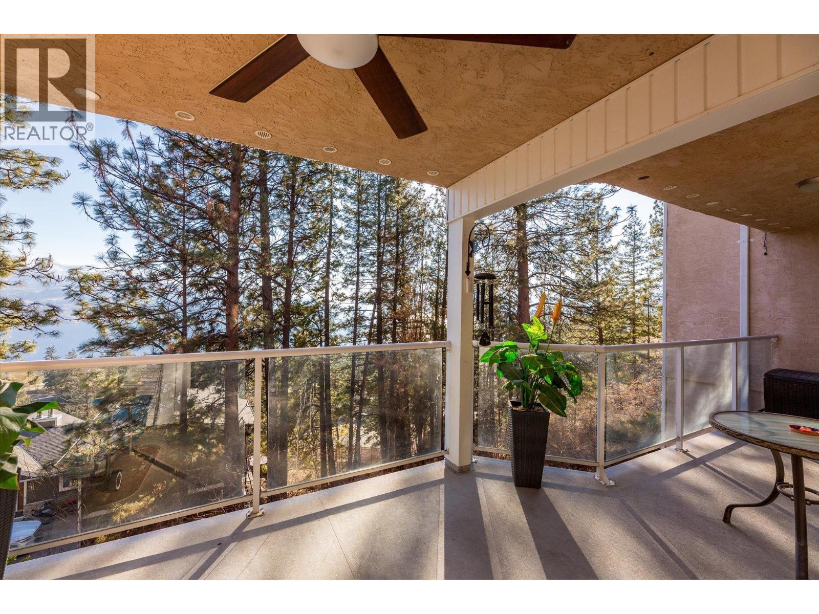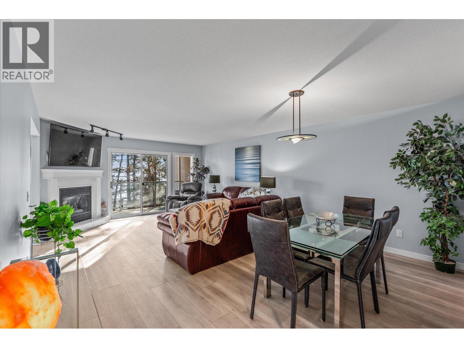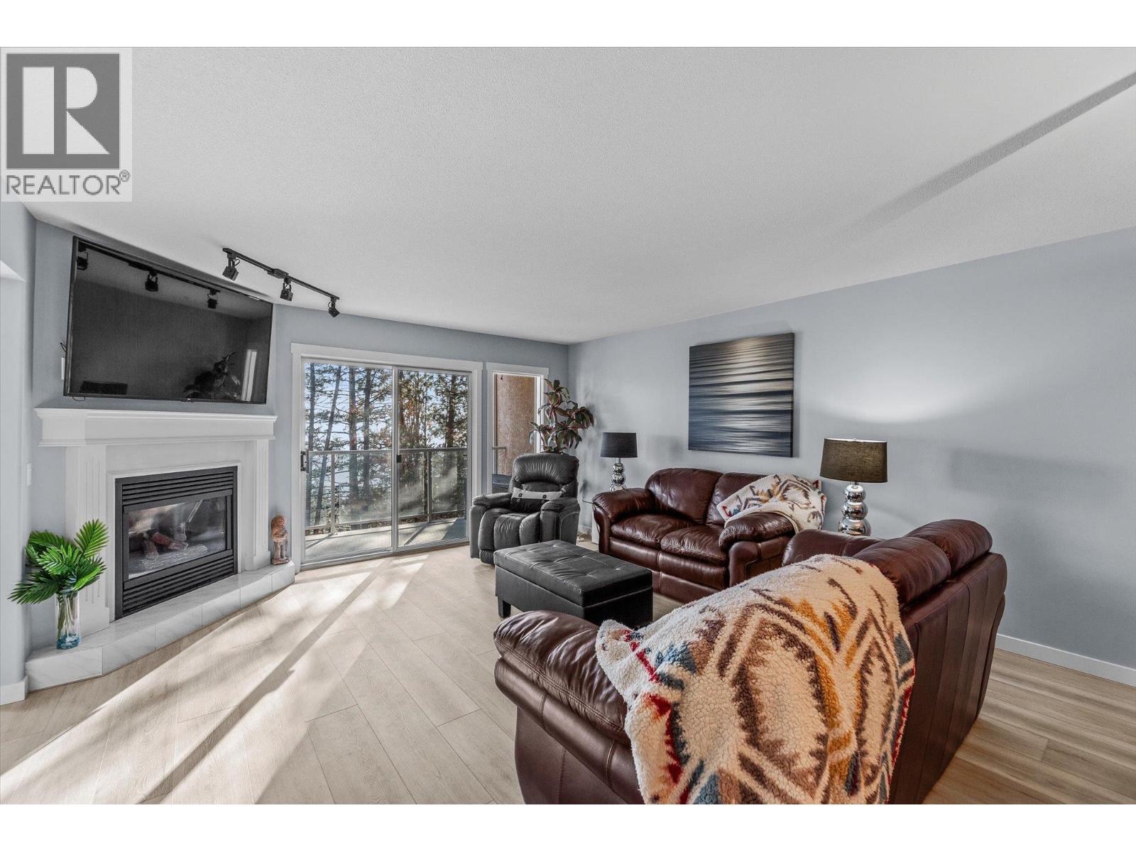 $357.65 MonthlyImagine waking up to panoramic lake and mountain views every single day from your 2 bed/2 bath condo, tucked away among the pines yet only minutes to the lakefront and shopping. Step onto your covered sundeck for morning coffee or evening wine with shimmering water views through the trees. Inside, everything feels fresh and modern with new kitchen cabinets, countertops, stainless steel appliances, fresh paint and new vinyl flooring - all redone in 2024. Bright sliding doors bring the outdoors in, while radiant in-floor heating and a gas fireplace keep you cozy in cooler months. The primary suite has its own walk-in closet and 3-pc ensuite, with another bedroom and full bathroom for guests, kids or an office. You’ll love the covered parking space with your own locker (it's an end spot!), ample parking for a second vehicle or visitors, and low strata fees that include heat, water, and gas. Bonus: this pet-friendly complex comes with RV parking, a fitness room, games area, and a rec room with kitchen for gatherings. Whether simplifying or starting fresh, this condo offers incredible value and the ultimate Peachland lifestyle. (id:26472)