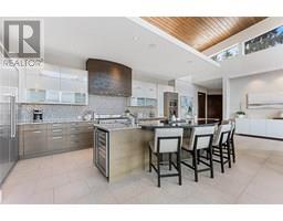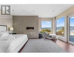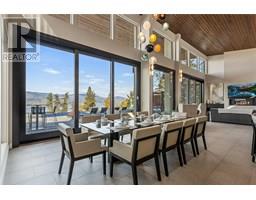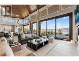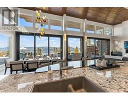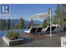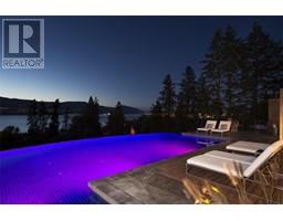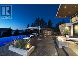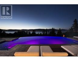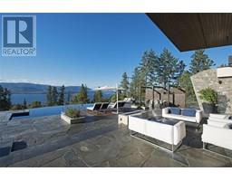 Private estate home set on 2.05 acres and perfectly positioned to capture the stunning lake, city and vineyard views. Enjoy an expansive flagstone patio with a spectacular negative edge saltwater infinity pool that creates a resort-like setting with room to lounge, entertain and take in the breathtaking views. Gated entry leads to heated triple garage & single garage plus RV garage. Upon entering the home you’ll notice walls of glass showcase views of the pool, lake and beyond. Soaring ceiling height w/floor to ceiling windows & sliding wall system create a seamless extension to the outdoors with the open concept great room, dining & kitchen. Kitchen features oversized granite island, professional appliances, custom fixtures & cabinetry. Generous sized lake view primary bedroom framed in windows w/ linear gas fireplace & full ensuite with frameless glass shower, his/her sinks and soaker tub. Contemporary style home is over 5500 square feet with 4 bedrooms & 6 baths. Lower level boasts wine room, media room and games room. New pool, patio, pergola & outdoor living space completed in the summer 2015. The home blends exterior with interior living superbly. Located a short stroll to adjacent Summerhill Winery and minutes to the lake, hiking, dining, boutiques and schools. (id:26472)