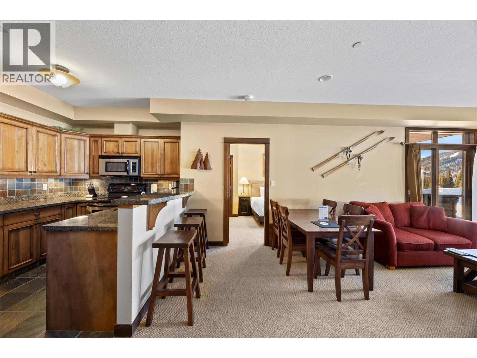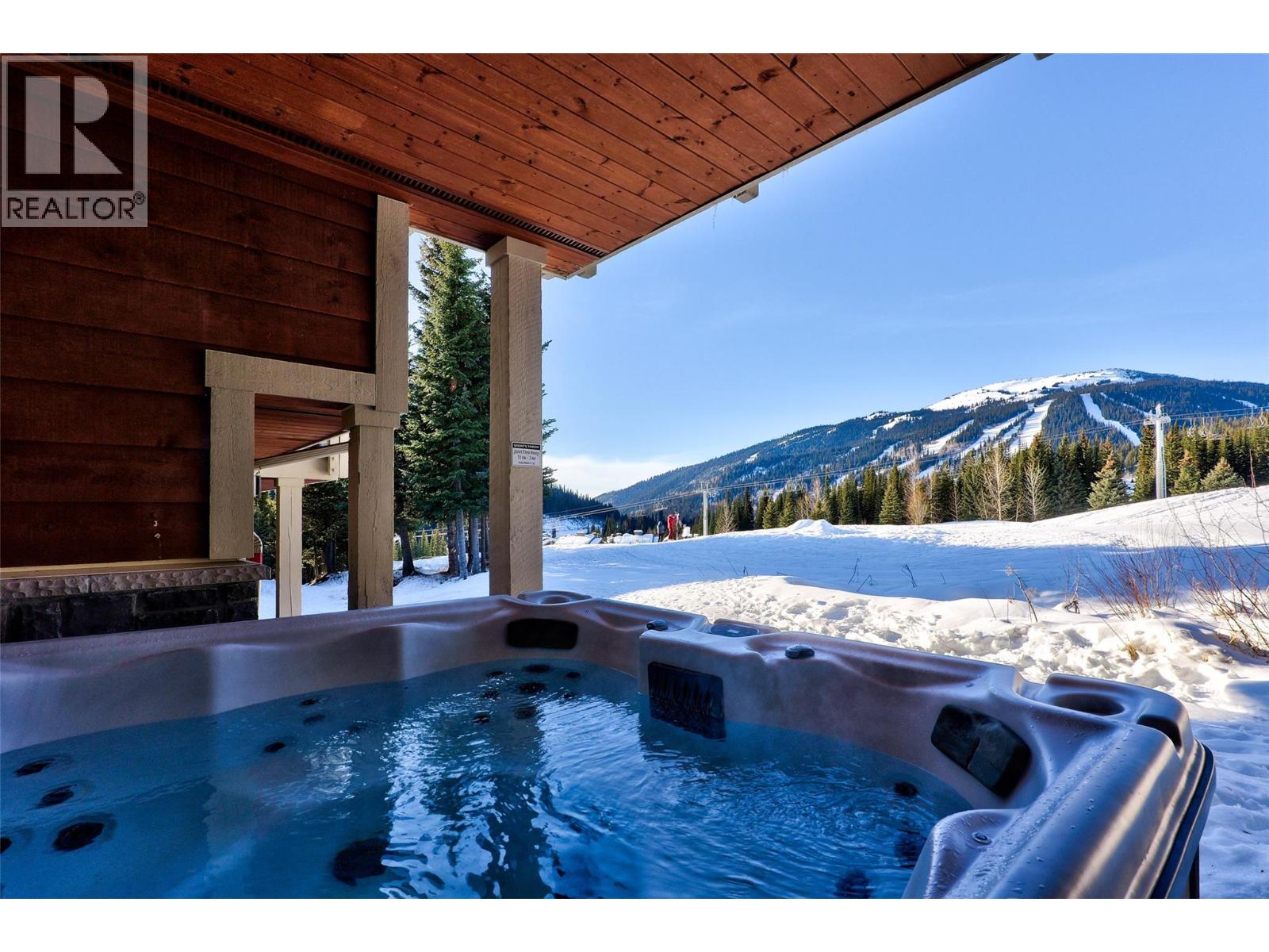 $550 MonthlyDon’t miss out on this 2 bed, 2 bath ground-floor condo with a PREMIER location in desirable ‘Stones Throw’. You will never get tired of the stunning views to the top of Tod Mtn & the Orient chairlift w/ skiers going by all day long. This is alpine living at its best with one of the most coveted ski-in/out locations in the resort. Ski directly to your back door, store your gear in the private ski lockers & relax in your own hot tub on the private patio while taking in breathtaking views. In summer, the grassy area extending beyond the patio provides a rare bonus space—perfect for kids & pets. The location is unbeatable: a 12-min walk to the village, steps to the resort-wide shuttle stop & seamless ski access via the East Village Ski Way with effortless ski-out to the Orient & Morrissey chairlifts. The primary bedroom features a king bed & ensuite bath w/ radiant heated floors, walk-in shower & bathtub. The 2nd bedroom offers a twin-over-queen bunk, ideal for family or guests. The fully stocked kitchen includes heated tile flooring, modern appliances & seating for 3 at the breakfast bar. The bright living area features large windows, gas fireplace, smart TV with Telus cable & dining for six—perfect for apres-ski gatherings. Additional features include in-suite laundry, two secure ski & bike lockers & underground parking stall w/ visitor parking available. No rental restrictions. Strata fee includes cable, internet, water, sewer, landscaping & snow removal. GST Applicable. (id:26472)