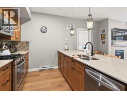 This 2 bedroom, 2 bathroom end unit townhome offers modern mountain living in the desirable East Village at Sun Peaks. This entry level home provides true ski in and ski out access near both the Orient and Morrissey chairlifts and is located directly opposite the future East Village development. Built in 2019, the upper level layout features an open concept design with large windows that bring in plenty of natural light. The living area includes a gas fireplace and opens to a south facing balcony with a private hot tub and room for a small patio set. The kitchen is finished with soft close cabinetry, stone countertops and stainless steel appliances. The primary bedroom includes a walk through closet leading to a four piece ensuite, while the second bedroom is conveniently located near the main three piece bathroom. A full size stacking washer and dryer are included in the unit. This townhome comes fully furnished and is ready to enjoy. A heated single car garage provides secure parking and storage, along with one additional parking stall out front. With year round access to skiing, biking, hiking and a short walk to the village, this property is ideal for full time living, a vacation getaway or a rental investment in a growing resort community. (id:26472)