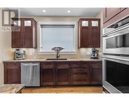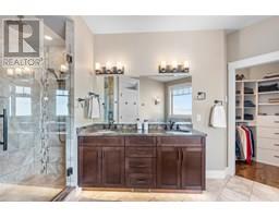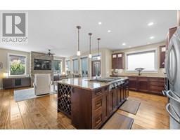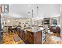 Nestled in the heart of Upper Mission’s coveted Ponds community, this custom-built 4-bed + den residence offers the perfect blend of elegance and comfort. Steps from Canyon Falls Middle School and Mission Village, this home is surrounded by scenic hiking/biking trails and just minutes from world-class wineries, beaches, top-tier schools, and vibrant local amenities.Designed for luxury living and seamless entertaining, the open-concept main floor is adorned with hardwood floors, 9-ft ceilings, and a stone-surround gas fireplace that anchors the inviting living space. The gourmet kitchen is a chef’s dream with stainless steel appliances, a KitchenAid 6-burner gas cooktop with griddle, built-in ovens, a warming drawer, beverage fridge, and a custom island with a built-in wine rack. A walk-in pantry with roll-out shelves adds effortless organization. The main-floor primary retreat boasts a spa-inspired ensuite with heated floors, a soaker tub, and a jetted rainfall shower. An additional main-floor bedroom offers flexibility as a home office or guest suite. Downstairs, the bright and spacious lower level is perfect for family living, featuring a large rec room, 3 beds, a full bath, and direct access to the 2 car garage with high ceilings. Outdoors, enjoy a private patio, rock retaining walls, and stunning lake views. The perfect backdrop for morning coffee or evening gatherings. This home offers both luxury and practicality in one of Kelowna’s most desirable neighborhoods. (id:26472)