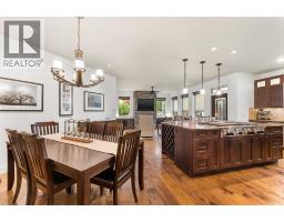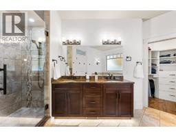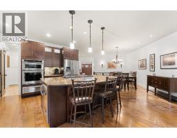 Nestled in the heart of Upper Mission’s coveted Ponds community, this custom-built 4-bed + den residence offers the perfect blend of elegance and comfort. Steps from Canyon Falls Middle School and Mission Village, this home is surrounded by scenic hiking/biking trails and just minutes from world-class wineries, beaches, top-tier schools, and vibrant local amenities. Designed for luxury living and seamless entertaining, the open-concept main floor is adorned with hardwood floors, 9-ft ceilings, and a stone-surround gas fireplace that anchors the inviting living space. The gourmet kitchen is a chef’s dream with stainless steel appliances, a KitchenAid 6-burner gas cooktop with griddle, built-in ovens, a warming drawer, beverage fridge, and a custom island with a built-in wine rack. A walk-in pantry with roll-out shelves adds effortless organization. The main-floor primary retreat boasts a spa-inspired ensuite with heated floors, a soaker tub, and a jetted rainfall shower. An additional main-floor bedroom offers flexibility as a home office or guest suite. Downstairs, the bright and spacious lower level is perfect for family living, featuring a large rec room, 3 beds, a full bath, and direct access to the 2 car garage with high ceilings. Outdoors, enjoy a private patio, rock retaining walls, and stunning lake views. The perfect backdrop for morning coffee or evening gatherings. This home offers both luxury and practicality in one of Kelowna’s most desirable neighborhoods. (id:26472)