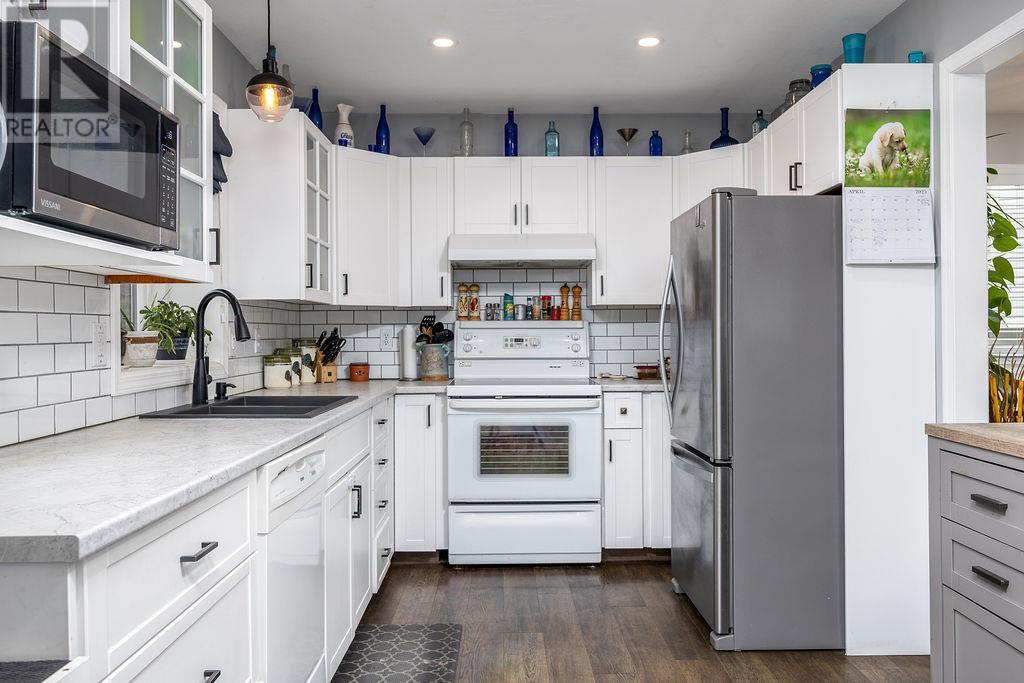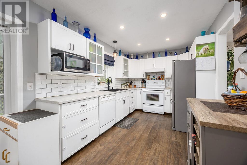 Fabulous 4 bedroom, 3 bathroom, well maintained and updated family home on a quiet cul-de-sac just steps to Davison Orchard, Planet Bee, playground, dog park, and just minutes to downtown or Okanagan Lake! Incredibly private backyard with huge mature cedars, cherry tree, irrigation, and great patio space + gazebo off the kitchen area to enjoy your private yard space. Main floor features a very functional open living space with gas fireplace, huge bay windows, and formal dining area as well as 3 bedrooms and 2 full bathroom. Downstairs has a huge rec room, large guest bedroom with half bathroom and fantastic storage room that could be another bedroom easily. Long list of recent upgrades including the kitchen, carpet, rock work on the front, lighting, windows, basement Bedroom, Paint & more! Double over height garage with natural gas heater and plenty of storage space. Very well maintained property and is move in ready! (id:26472)