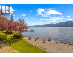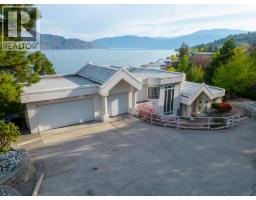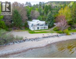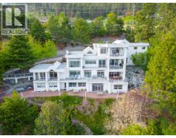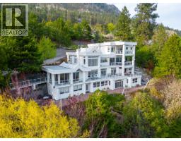 Extraordinary lakeshore generational estate offering over 500 feet of level beachfront on 2.17 acres of private, park-like grounds. Architecturally designed 8,300 square feet main residence with eight bedrooms and seven bathrooms, offering panoramic lake views from nearly every room. Featuring a Tuscan-inspired private theatre, games lounge, fitness room, and light maple kitchen with island, dual Sub-Zero refrigerators, and floor-to-ceiling windows capturing spectacular lake views. Four levels with generous decks, panoramic vistas from nearly every room, and a luxurious 800 square foot top-floor primary suite. Glass-enclosed entertaining wing with full butler’s kitchen, plus a private in-law/guest suite. At the water’s edge, a detached 1,638 square foot five bedroom, two bathroom beach house offers ideal guest accommodation with extensive storage for water toys. A charming rustic log lakefront cabin retreat tucked among the trees completes this exceptional property. Mature landscaping, expansive lawns, walking trails, multiple ponds, and a dramatic feature rock waterfall create a true resort setting. Pile-driven dock with lift, beach volleyball, and unobstructed 180-degree lake, valley, and mountain views. Ideally located just minutes to the Okanagan Connector and West Kelowna. A rare signature offering and the ultimate expression of Okanagan lakeshore living. (id:26472)