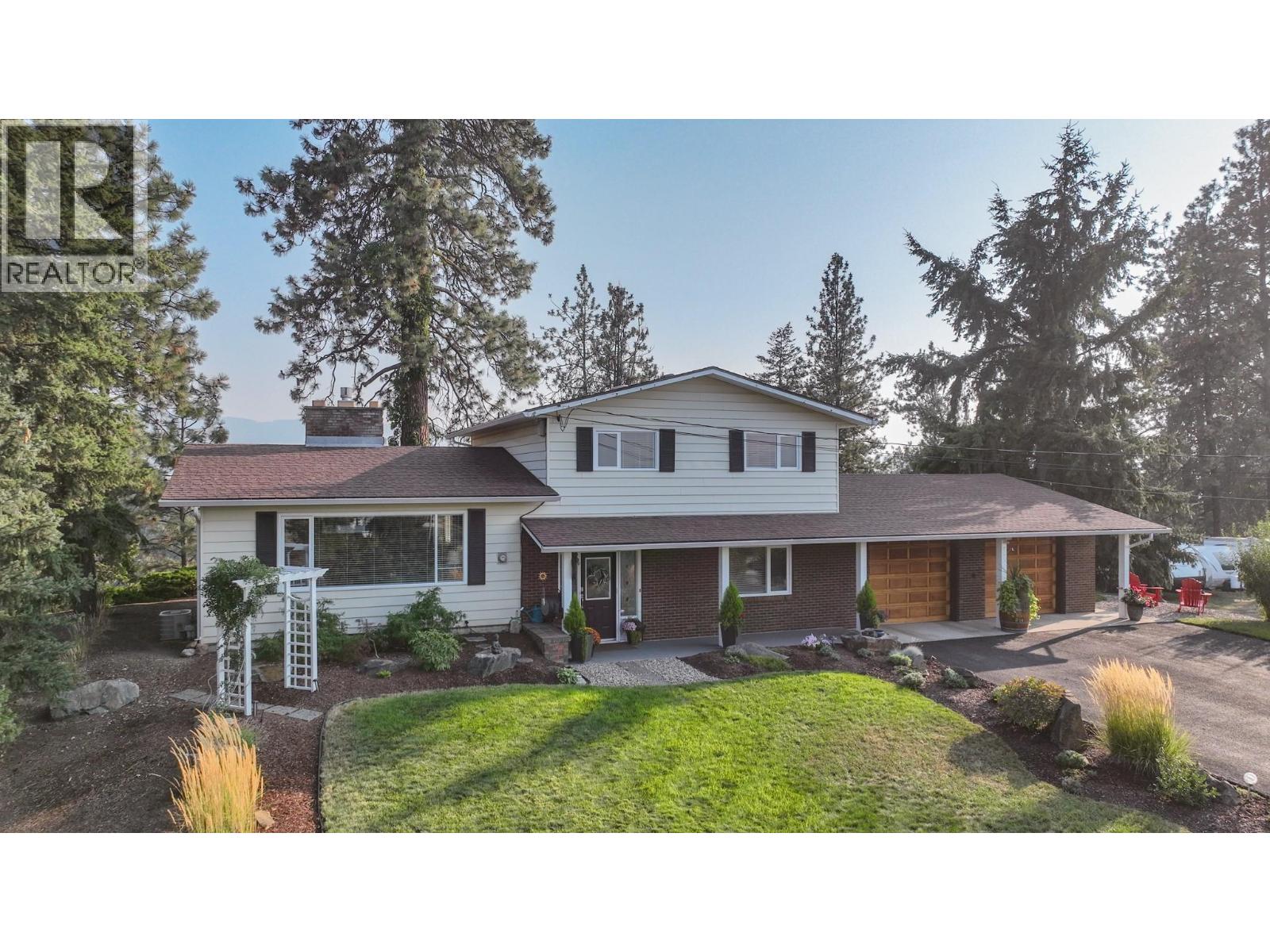 .Luxury Living with Development Potential. An exceptional opportunity awaits with this rare 1.5-acre property, zoned for multi-family development and perfectly positioned minutes from town. The immaculate residence offers a unique split-level design with soaring solarium-style windows that flood the dining area with natural light and frame sweeping BX views. A welcoming living room with gas fireplace and hardwood floors creates a warm and inviting atmosphere, while the updated kitchen (2023) features stainless steel appliances, induction range, ample storage, and a charming breakfast nook overlook the landscape. The spacious primary suite offers a walk-in closet, full ensuite, and Juliet balcony retreat. Additionally a spare bedroom and full bath on the same level. Flexible main-level spaces include a bright office, laundry, guest bath, and a versatile family/flex room with sliding glass doors to the backyard . The lower level adds a guest bedroom/ flex space and storage. Outdoors, enjoy low-maintenance landscaping, private entertaining areas, and a serene ravine backdrop. A heated detached shop with 200-amp power, mechanics pit, and abundant storage provides endless possibilities. Useable flat areas for storage, garden, and ideas. Whether you choose to hold, develop, or simply enjoy refined living, this property combines luxury, versatility, and investment potential in one remarkable package (id:26472)