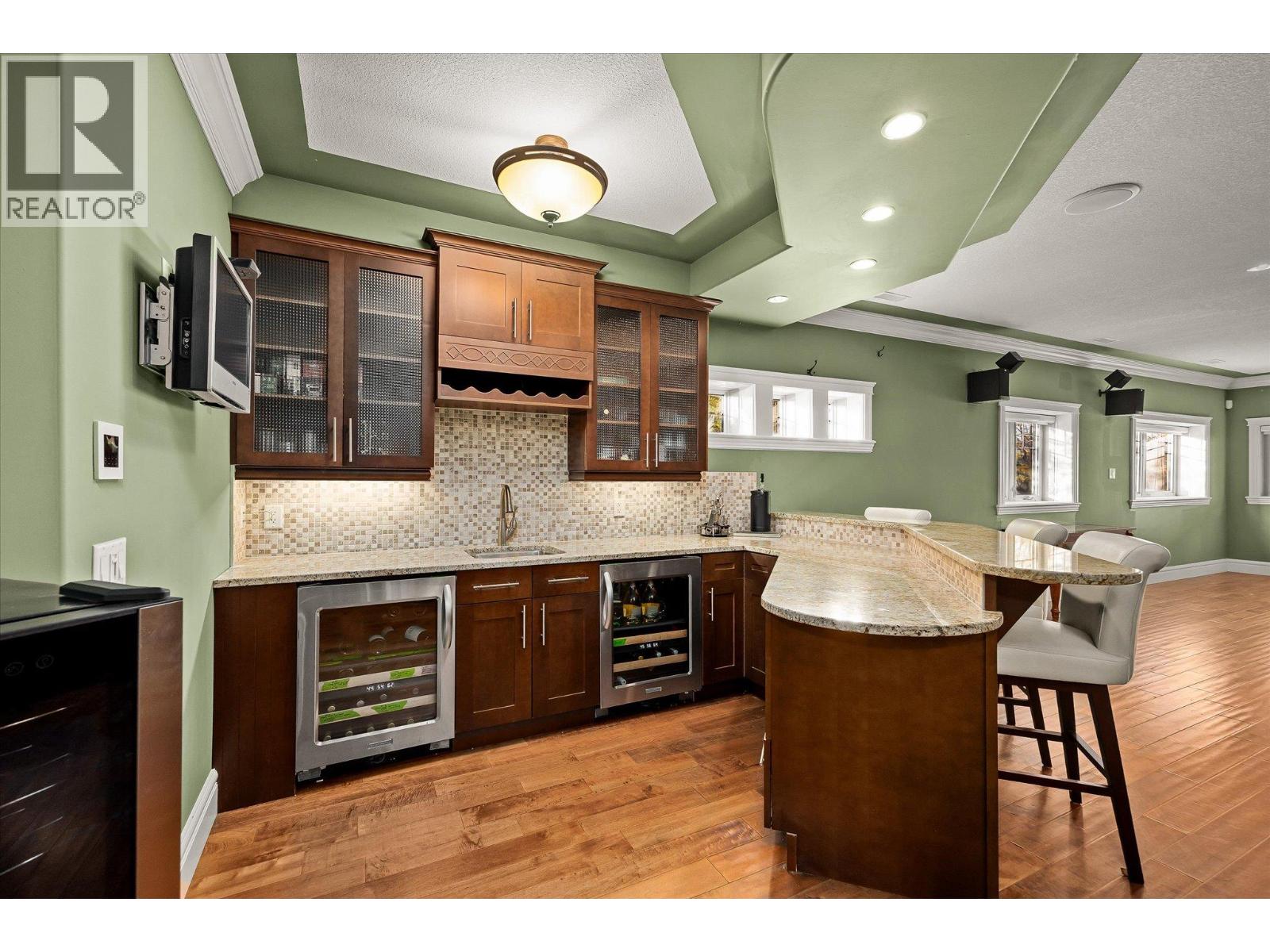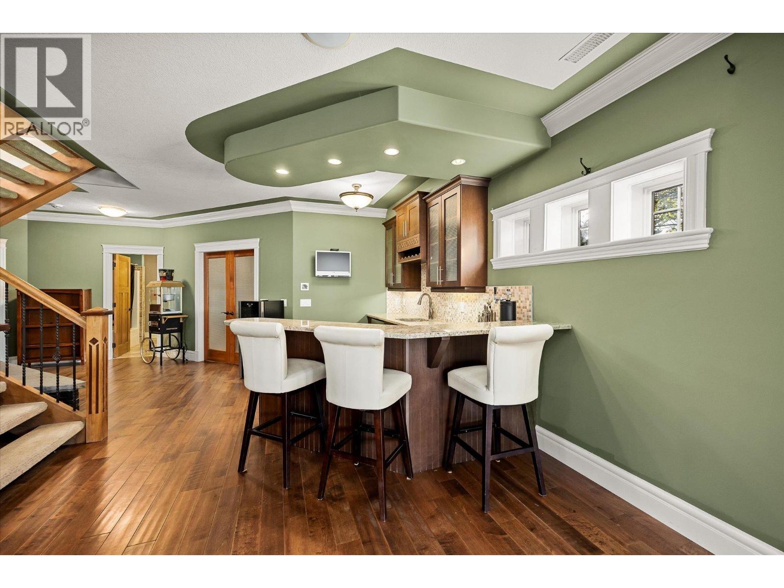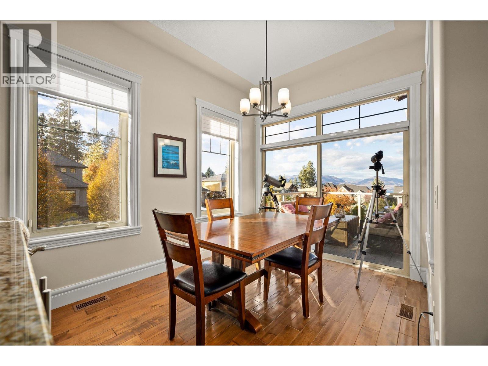 Welcome to The Quarry — where timeless craftsmanship meets comfort & livability. This beautifully designed home offers soaring ceilings, expansive windows & an open-concept main level, filling the home with natural light. A thoughtfully defined formal dining area adds an elegant touch — set apart just enough to feel special, yet still visually connected through architectural openings. The spacious kitchen & great room open onto a large deck — ideal for morning coffee or evening gatherings while enjoying the peaceful surroundings. The main level is anchored by a generous primary suite featuring a spa-inspired ensuite with heated tile floors, a soaker tub, walk-in shower & impressive walk-in closet. Every detail reflects thoughtful design and craftsmanship. Downstairs, the lower level offers flexibility with three additional bedrooms, plus an office, fitness or storage area, & a large family room complete with a wet bar — perfect for entertaining guests or movie nights. The sound system has over 20 speakers both inside & outside! Step outside to a fully fenced backyard with a luxury hot tub, and the garage is heated, great for a shop! Set in a desirable location near Canyon Falls Middle School & the amenities of The Ponds, this home suits downsizers who love to host or families with kids seeking their own retreat. Classic architectural details, rich finishes & a true sense of pride in construction make this property a rare find in one of Kelowna’s most sought-after communities. (id:26472)